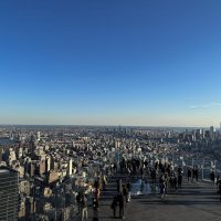 Nach gut 1,5h bin ich am südlichen Ende/Anfang des Parks angelangt und gehe erst mal einen Kaffee trinken. Sitzen ist gar keine schlechte Idee, man merkt schon die Beine. Ich miete mir ein Fahrrad und radele einmal rund um den Central Park. Nach einer ¾ Stunde bin ich rum. War tatsächlich anstrengend geht es doch hoch und runter. Nachdem ich das Bike wieder abgegeben habe geht es mit der U-Bahn zum Empire State Building. Zurück an der Oberfläche sehe ich das Peloton ganz in der Nähe ist und mir fallen die Einkaufsaufträge wieder ein, ab in den Store….Fehlanzeige. Als ich aus dem Store komme bin ich unmittelbar unter „The Edge“, einer weiteren Aussichtsplattform.Ich fahre mit dem Aufzug ins 100. Stockwerk…..in 47s !! Allein das Aufzugfahren in den Wolkenkratzern ist schon der Hit. Oben angekommen ist es sensationell. Eine Plattform, wie ein Balkon ans Gebäude angehängt in ca. 300m Höhe. Mit Glasboden