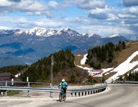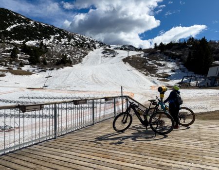 Samstag, das Wetter ist kühl aber sonnig. Heute ist Silke dran die Tour rauszusuchen. Nach dem Frühstück geht es los. Die Akkus sind diesmal beide vollgeladen, anhand der Eckdaten der Tour brauchen wir das auch. Die Strecke zieht erst mal in Nördlicher Richtung den Berg hinauf um dann wieder in das Tal runterzuführen. Dort umfahren wir den Berg um diesen dann von hinten wieder zu erfahren. Die Auffahrt zieht bis ins Skigebiet hoch. Es ist schon seltsam hier. Die Pisten sind zum teil noch voller Restschnee alles andere liegt brach. Tatsächlich sehen wir noch einige Skitourengänger die die Pisten hoch gehen um diese dann herunterzufahren. Ich schätze die müssen dabei auch sicherlich einige Grünstellen überfahren…..was soll es! Bis zum Pass fahren wir von 65m auf 1650m über Meereshöhe. Hier ist es schon noch ganz schön kalt. Die Abfahrt geht über einige ausgesetzte Wege die einiges an Mut erfordern. Auch das überqueren einer noch unter Schnee liegenden Piste gehört dazu, unglaublich anstrengend!! Danach geht es die Passstraße mit über 70km/h runter. Wieder im Tal angekommen haben wir noch 10km bis zum Campingplatz. Die Tour hat uns beide sehr gefordert. Wir sind deutlich über 90% der Strecke im „ECO“ Modus gefahren, hatten wir 1. bedenken das der Akku nicht reicht und 2. Sportlichen Ehrgeiz. Tatsächlich sind an Ende noch ca. 25% Restkapazität übrig. Bedenkt man, daß die Tour 70km und knapp 2000hm hatte, haben wir gut gehaushaltet. Es war eine super Tour, wir sind beide ziemlich platt aber sehr zufrieden. Zum Abendessen gibt es die Reste von gestern, heute ist früh Schluss.