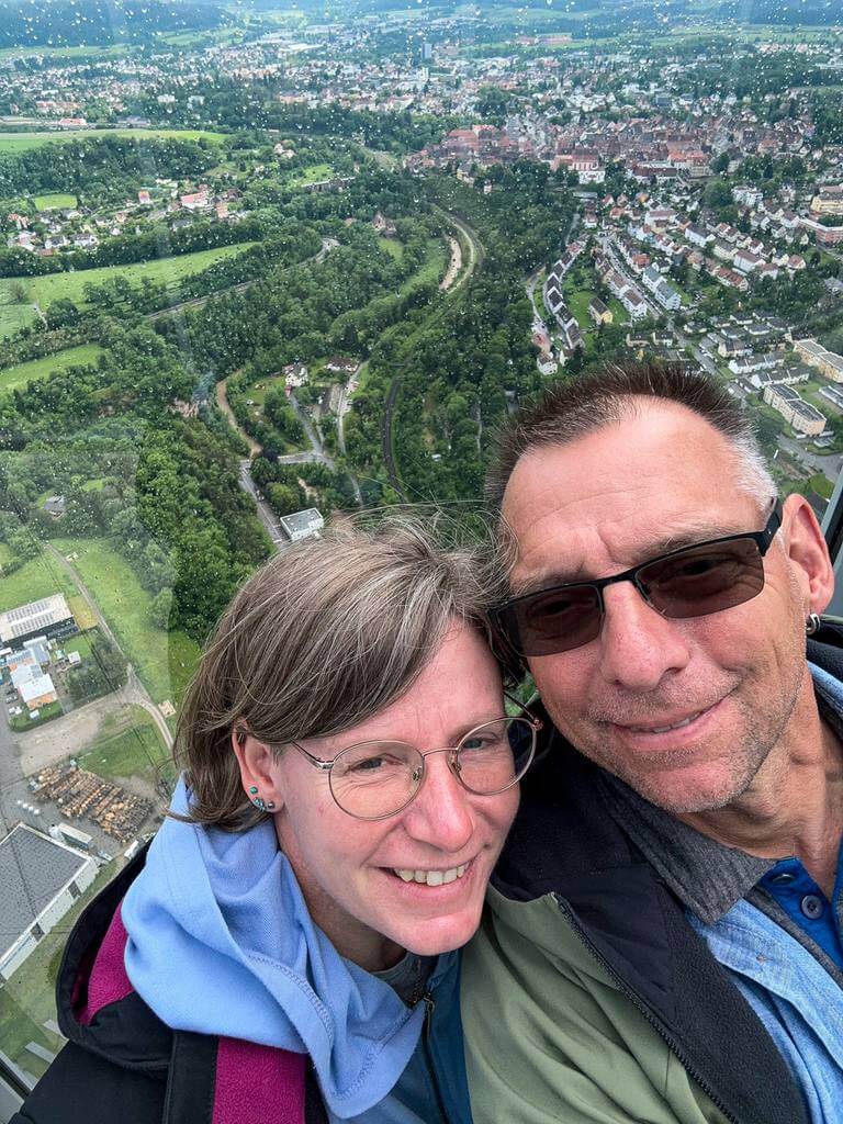 Wir starten gegen 11 Uhr , Etappenziel ist Überlingen am Bodensee. Unterwegs sehen wir in Höhe von Rottweil einen gewaltigen in sich gedrehten freistehenden Turm. Kurze Recherche im Netz, es ist ein „Elevator Testturm“ in dem Aufzüge erprobt werden. Dieser ist für die Öffentlichkeit an Wochenenden geöffnet. Die Besucherplattform befindet sich in 230m Höhe. Das ist doch hochinteressant und wir fahren hin. Im Turm befinden sich 12 Aufzugschächte in denen verschiedene Aufzugsysteme getestet werden. Der gläserne Besucheraufzug benötigt für die 230m gerade mal 30s nach oben. Das sind etwa 8m/s und schon ziemlich schnell. Aber dort schaffen sie schon Geschwindigkeiten bis 18m/s! Die gedrehte Glasfasernetz Außenhülle des Turms sorgt für Luftverwirbelungen des Windes und minimiert die Schwankungen des Turms. Die Aussicht von der Besucherplattform ist großartig und die Technik für mich hochinteressant. Der Turm ist eine klare Empfehlung!!