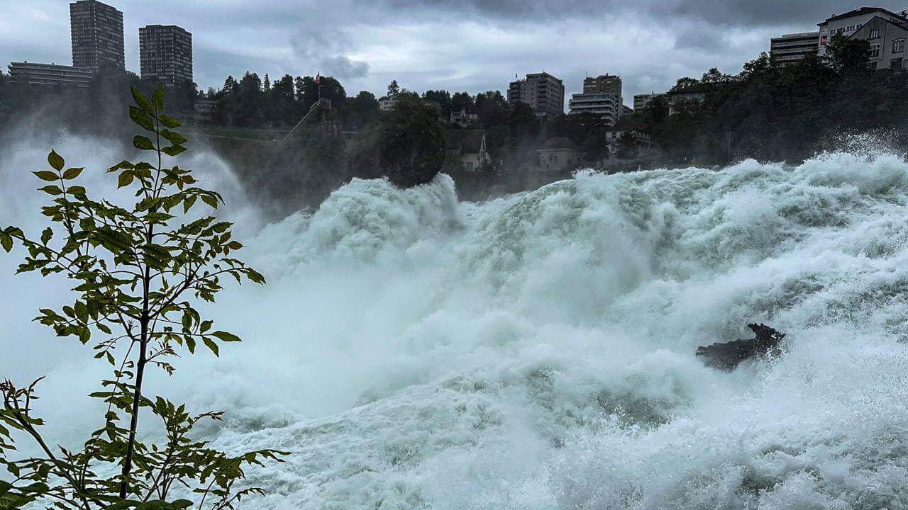 Deutlich Hochwasser am Rheinfall Schaffhausen