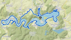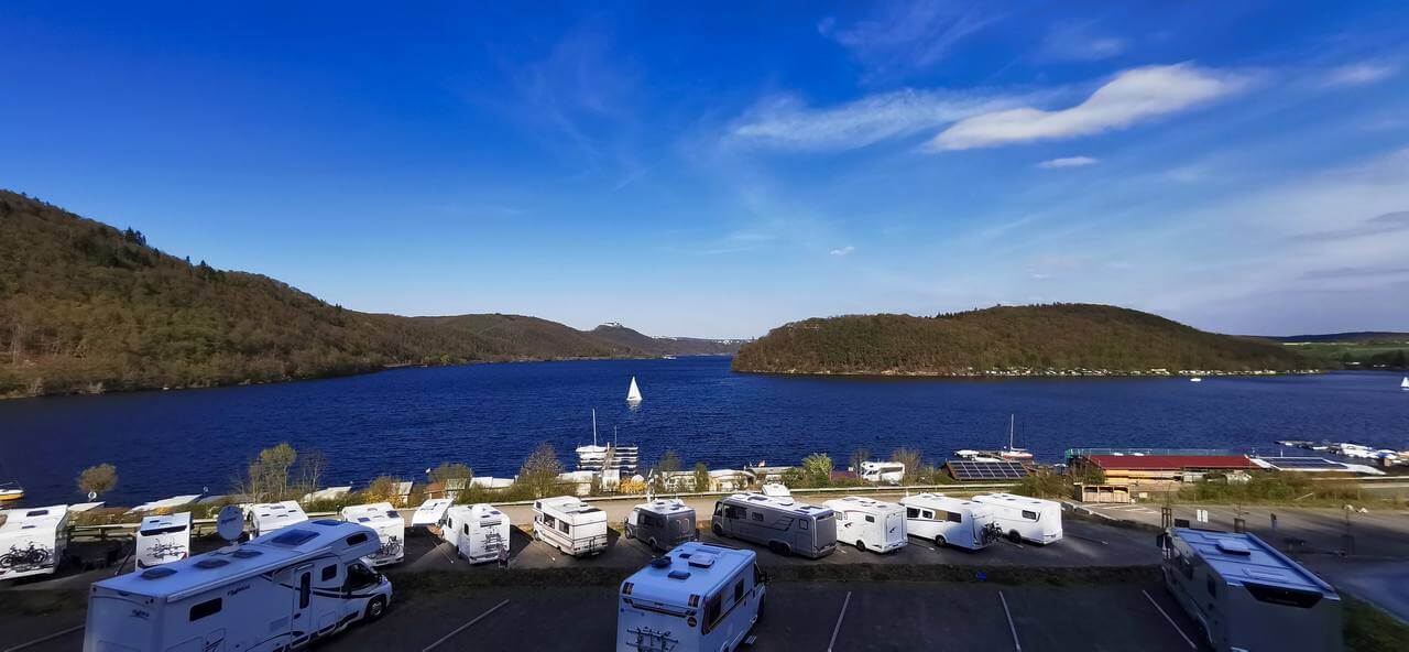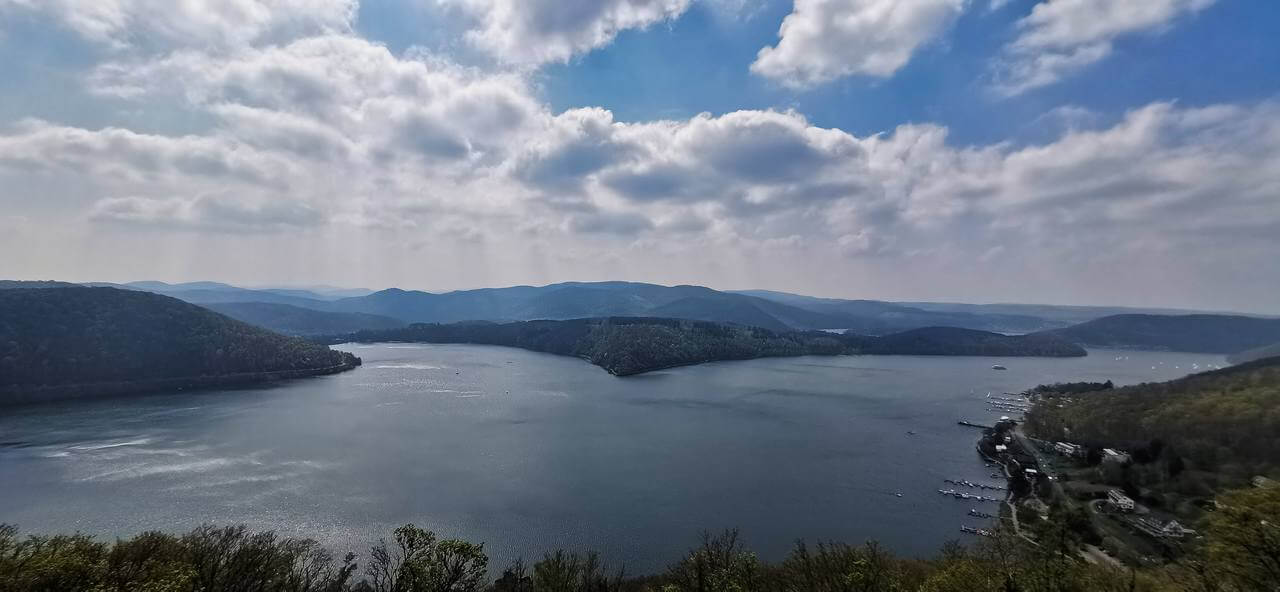 Der Tag fängt gut an. Das Wasser im Tank reicht noch für die Kaffeemaschine. Um 8:00 Uhr kommt der Bäckerwagen, die Brotsituation ist perfekt. Noch schnell 3 Gießkannen Wasser in den Tank gefüllt und alles ist wieder gut. Nach dem Frühstück mit Dirk am rechten Scheinwerfer schnell den LED Strahler richtig eingesetzt, der Reflektor war wohl beim Einbau leicht verbogen worden. Gegen halb 12 fahre ich mit dem Rad los. Will heute rund um den See fahren.Es ist eine sehr schöne Tour. Unterwegs ein kurzer Schlenker über die Burg Waldeck. Dort ist großartige Aussicht über den See. Die Staumauer ist auch sehr beeindruckend. Gegen 17.30 Uhr bin ich wieder zurück und auch schön müde. 60km und fast 900hm. Ist schon was. Erst mal ein Kaffee und dann duschen…..hab ja wieder Wasser an Bord. Dirk ruft rüber ob wir zusammen Essen gehen wollen. In der Alm klingt der Abend aus und ich bin beizeiten wieder im Bett. Toller Tag.