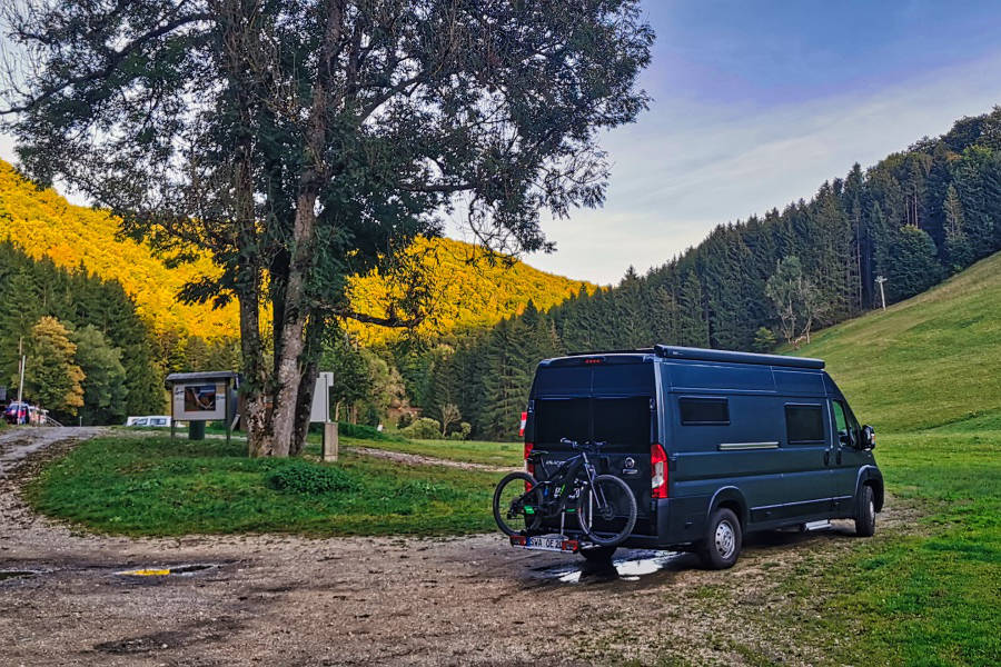 Nach Übernahme von Karsten fahre ich zum Stellplatz an den Skiliften in Wiesensteig. Empfehlung von ORC. Mitten im Wald gelegen, sehr schön und einsam.