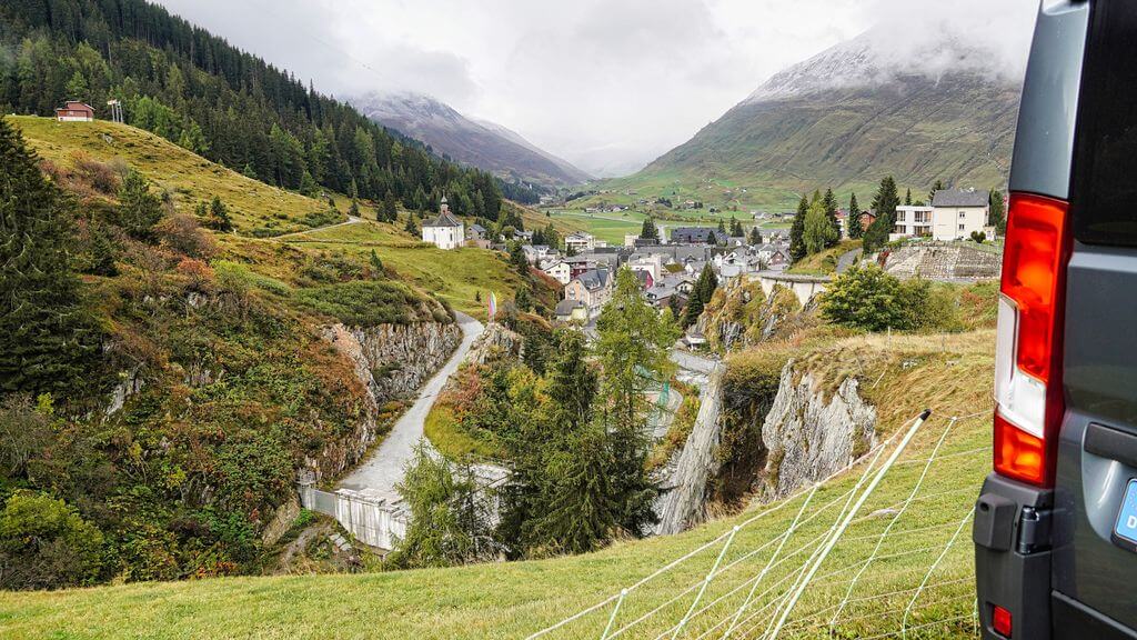 Auf nach Andermatt zu Simon. Komme da um 12 Uhr an. Es stellt sich erst mal das Problem des Stellplatzes. Ist doch der Platz am Skilift seit Sonntag geschlossen und wird für die Skisaison zurückgebaut als Parkplatz. Vor der Wohnung geht es ist aber ziemlich schräg so dass ich auch mit Keilen und allem nicht annähernd gerade werde. Etwas weiter oben ist ein Bauernhof. Ich frage einfach mal an. Die Bauersfrau sagt mir, ich solle mich doch einfach in die Einfahrt des Wanderwegs stellen der gegenüber von Simons Wohnung ist. Da würde öfter ein Wohnmobil stehen. So wird es gemacht und perfekt. Die Nachbarschaft, eine Herde Bergziegen ist auch sehr neugierig, hat aber doch einen etwas strengeren Geruch. Gegen Abend sind diese dann aber im Stall so das ich nichts mehr von ihnen rieche. Da es regnet bleiben wir erst mal in seiner WG Wohnung. Wir wollen nachher dann mal durch das Ort laufen. Simon macht noch schnell seine Theorie für die Platzreife für den Golfplatz fertig und dann gehen wir los. Der Golfplatz macht schon was her und die Baustelle die zum Radisson Hotelkomplex gehört ist gewaltig. Wir gehen etwas in der Bar des „The Chedie“ trinken, dem Hotel in dem Sophie im November anfängt. WOW ….Nobel. Abends essen wir in Simons Stammkneipe Burger, sehr lecker. Wir treffen noch Freunde von Simon. Es ist ein sehr schöner Tag mit meinem Sohn, ich bin danach etwas traurig das es so selten ist das man sich sieht, aber das ist das Leben