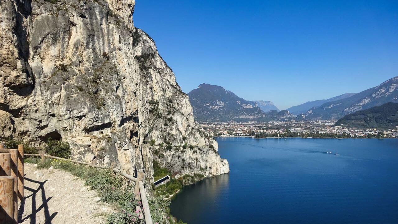 So gegen 8 Uhr hupt es vor dem Campingplatz und der Bäckerwagen ist da. Perfekt. Besser geht nicht. Ich lasse es ruhig angehen und will heute nach Riva und wie geplant die „Ponale Strasse“ hochfahren. Hatte gestern auch kurz überlegt die Runde über den Tremalzo zu drehen, aber nach Komoot kommen da 2700hm und fast 90km zusammen- leider zu viel. So gegen halb zwölf starte ich. Der Strasse lang und dann am Radweg an Arco vorbei nach Riva. Es ist ca. 20 Jahre her das ich hier war und ich kann mich an ….nichts mehr erinnern. Ich weiß zwar wo es zur Ponale hoch geht aber sonst….. Aber die Auffahrt ist nicht umsonst eine der schönsten überhaupt. Diese Aussichten über den See….