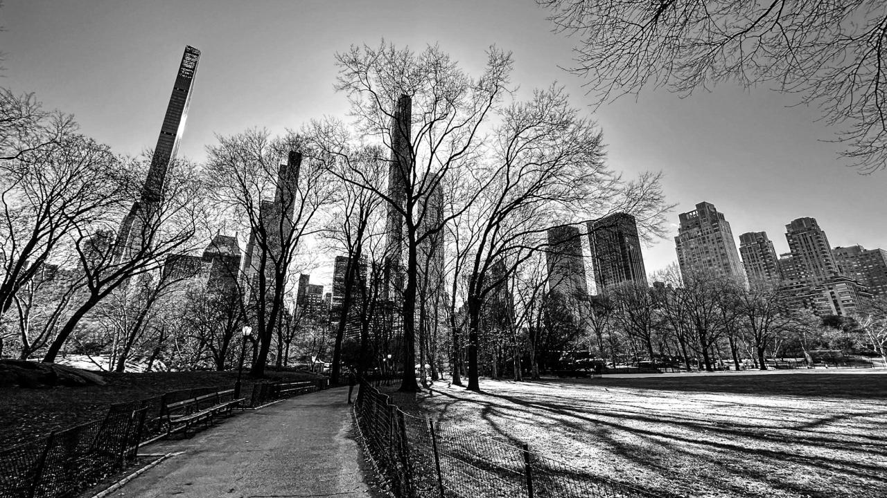 Ich schlafe hier eigentlich sehr gut. Um 7.30 Uhr gibt es einen Kaffee und um 10.30 Uhr starte ich in die Stadt. Der Central Park ist mein Ziel. Dort angekommen laufe ich erst mal eine Weile quer durch. Ganz schön groß! Der Park ist 4km lang und 860m breit. Aber schön hier, irgendwie schon interessant die riesigen Hochhäuser im Kontrast zu der Natur.