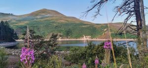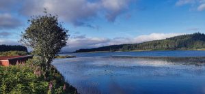 Superruhige Nacht, nix los hier. Nachdem ich meinen Kaffee getrunken habe ziehe ich mich an und wandere los. Ich will mir das Naturschutzgebiet etwas anschauen. Sehr schöne Wald- und Hügellandschaft. Unterwegs treffe ich an einer Parkbank Eric. Wir kommen ins Gespräch und er erzählt mir das er in Edinburgh lebt, bei schönem Wetter hierher kommt und das Gebiet durchwandert, irgendwo mit dem Zelt übernachtet und Montags wieder an der Universität lehrt. Bei einem Kaffee schwatzen wir eine gute halbe Stunde miteinander. Einer sehr schöne Unterhaltung einfach mal so. Dann weiter bis zu einem See.