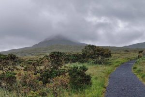 So richtig Mühe gibt sich das Wetter noch nicht. Die Nacht war stürmisch und nass aber wir hoffen auf Besserung. Nachdem ich im Omnia Brötchen aufgebacken habe frühstücken wir erst mal. Plan ist wandern im Nationalpark auf den Diamont Hill. Gesagt getan. Gegen 11 Uhr sind wir am Nationalpark und starten die Wanderung. Wir laufen den Connemara und Diamont Hill Loop. Geht erst mal ganz einfach einen breit geschotterten Wanderweg entlang und zweigt dann auf einen Steinstufenpfad ab der sich auf den Berg zieht. Das ganze entwickelt sich zu einer schweißtreibenden Wanderung die nicht ohne ist. Ca. 50m unter dem Gipfel holen uns die Wolken ein und die Sicht ist dann eigentlich ganz weg 🤷🏻. Zur Entschädigung fängt es auch direkt an zu regnen und wir sind in kürzester Zeit nass bis auf die Haut. An Karsten wird erst mal heiß geduscht und alles ist wieder prima. War eine wirklich schöne Wanderung und wenn wir was gesehen haben tolle Landschaft. Wir fahren weiter in Richtung Dublin. In Tullamore übernachten wir. Wir haben für Morgen eine Führung durch die Tullamore Destillery gebucht mit Tasting und wollen morgens noch Golf auf dem Pitch and Put Golfkurs spielen. Golf ist in Irland Volkssport und nicht so Elitär wie in Deutschland. Bin gespannt wie es wird und freue mich darauf.