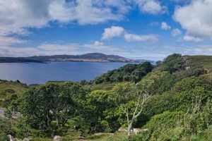 Weiter geht es, wir wollen noch an die Cliff´s of Moher. Kurz vorher essen wir eine Kleinigkeit und dann brechen wir unsere Fahrt zu den Klippen ab. Es regnet inzwischen Bindfäden und da brauchen wir diese Klippen nicht auch noch. Wir fahren jetzt weiter In Richtung Galway. Unterwegs wollen wir uns noch Dunguaire Castle anschauen. Das Navi führt uns quer durch die Irischen Berge. Kilometerlange schmalste Strassen, eher Wege, durch die Karsten gerade so passt. Wenn uns ein Auto entgegen kommt ist es immer interessant, aber das passiert auf ca. 25km nur zwei- oder dreimal. Hier ist quasi niemand außer uns unterwegs. Eine absolut großartige Landschaft bietet sich uns. Der Weg lohnt auf jeden Fall und der eine oder andere Schweiß/Angsttropfen ist es wert. Am Castle angekommen besichtigen wir es kurz und fahren dann weiter in Richtung Letterfrack, dem nächsten Ziel unserer Liste.