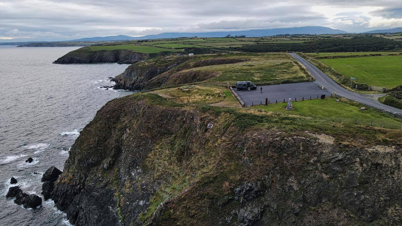 Gegen 11 Uhr machen wir uns auf und fahren zum Checkin. Ratz Fatz sind wir durch und stehen an zum Boarding. Hier dauert es etwas aber als es dann los geht sind wir schnell an Bord und auf dem Sonnendeck. Die Überfahrt ist, glücklicherweise, sehr ruhig und um 16 Uhr sind wir in Irland angekommen, eine halbe Stunde vor der Zeit 👍🏻. Wir fahren die East Coast Road, eine kleine Strasse die sich an der Ostküste entlangzieht. Mit einer kleinen Fähre setzen wir über einen Fluss über und kurz darauf sind wir an der ersten Steilküste angekommen. Echt schön hier, kurzer Fotostop, Beine vertreten und dann geht es weiter. Nach 2 Stunden erreichen wir in Annestown einen kleinen Parkplatz direkt an der Steilküste. Übernachtungsplatz gefunden. Wir laufen nach dem Abendbrot nochmal zum Hafen runter und dann müde zurück zu Karsten.