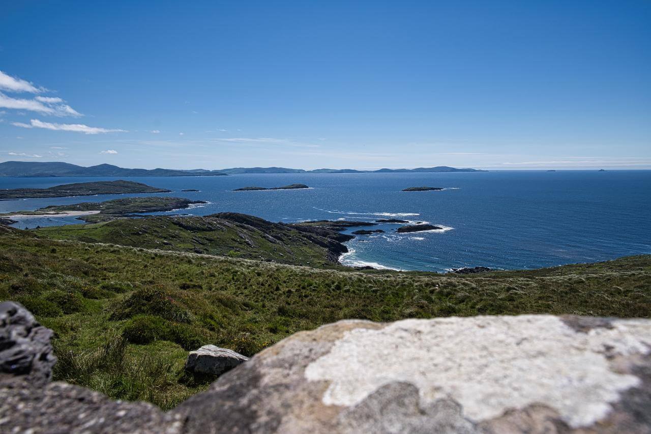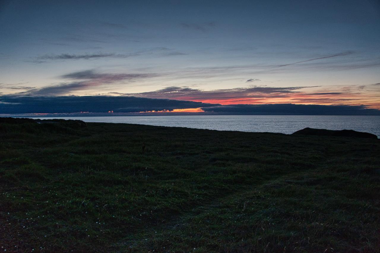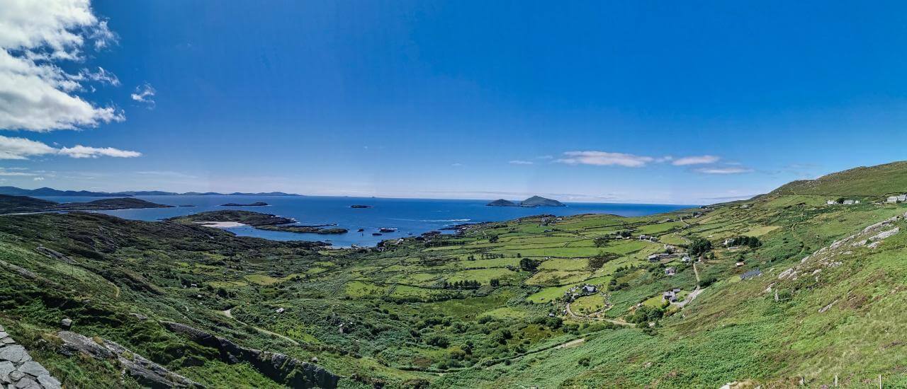 Leichter Nieselregen am Morgen, aber schon besser als gestern. Heute fahren wir den „Ring of Kerry“ eine 179,0 km lange Panoramaküstenstraße im Südwesten Irlands. Als wir losfahren hört der Nieselregen auf. und es beginnt aufzuklaren. Eine phantastische Landschaft bietet sich uns . Erst zieht sich die Strasse durch das Land die Berge hinauf. Nach jeder Kurve ergeben sich neue Blicke auf die großartige Landschaft. Und Kurven hat die Strasse genug. Ich bin froh das Karsten nicht breiter ist. Es ist überall eng und die Seiten hoch zugewachsen. Auch über die Luftfederung und höheren Federn an der Front bin ich sehr glücklich. War eine gute Investition! Der Ring of Kerry mündet dann in den Wild Atlantic Way. Inzwischen ist das Wetter super und die Sonne scheint satt. Nach kurzer Zeit sind wir am Atlantik und ….. was soll ich sagen …. Boah. Wir parken an einem Spot und laufen an den Ozean runter. Es ist gerade Ebbe und das Meer ist kalt. Aha…..deswegen haben auch alle Schwimmer Neopren an. Wir fahren weiter. Am Nachmittag überqueren wir den Shannon mit der Fähre und fahren bis Kilkee. Die dort ausgewiesenen Parkplätze haben alle eine Höhenbeschränkung und sind somit nicht für uns geeignet. Park4Night zeigt uns etwas außerhalb noch einen Übernachtungsplatz an den wir auch anfahren…….. Hammerplatz…… direkt oberhalb der Steilküste. Spektakulär. Die Steaks die wir gestern beim Metzger gekauft haben wandern auf den Grill und die Kartoffeln in die Pfanne. Irgendwie war das mit den Kartoffeln nix. Haben sie nicht weichbekommen aber die Steaks waren dafür fantastisch. Der Abend endet mit einem sehenswerten Sonnenuntergang. Alles Top heute.
