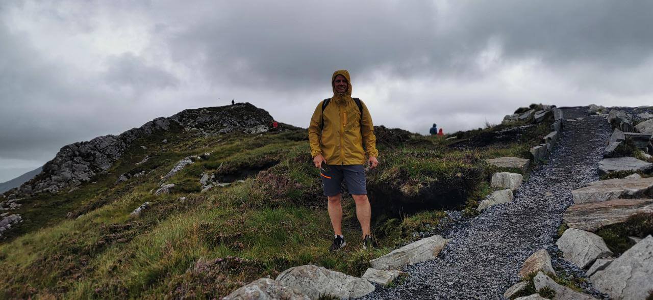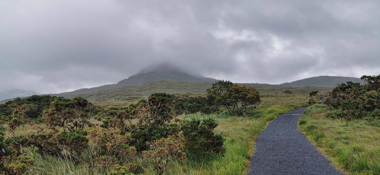 So richtig Mühe gibt sich das Wetter noch nicht. Die Nacht war stürmisch und nass aber wir hoffen auf Besserung. Nachdem ich im Omnia Brötchen aufgebacken habe frühstücken wir erst mal. Plan ist wandern im Nationalpark auf den Diamont Hill. Gesagt getan. Gegen 11 Uhr sind wir am Nationalpark und starten die Wanderung. Wir laufen den Connemara und Diamont Hill Loop. Geht erst mal ganz einfach einen breit geschotterten Wanderweg entlang und zweigt dann auf einen Steinstufenpfad ab der sich auf den Berg zieht. Das ganze entwickelt sich zu einer schweißtreibenden Wanderung die nicht ohne ist. Ca. 50m unter dem Gipfel holen uns die Wolken ein und die Sicht ist dann eigentlich ganz weg 🤷🏻. Zur Entschädigung fängt es auch direkt an zu regnen und wir sind in kürzester Zeit nass bis auf die Haut. An Karsten wird erst mal heiß geduscht und alles ist wieder prima. War eine wirklich schöne Wanderung und wenn wir was gesehen haben tolle Landschaft. Wir fahren weiter in Richtung Dublin. In Tullamore übernachten wir. Wir haben für Morgen eine Führung durch die Tullamore Destillery gebucht mit Tasting und wollen morgens noch Golf auf dem Pitch and Put Golfkurs spielen. Golf ist in Irland Volkssport und nicht so Elitär wie in Deutschland. Bin gespannt wie es wird und freue mich darauf.