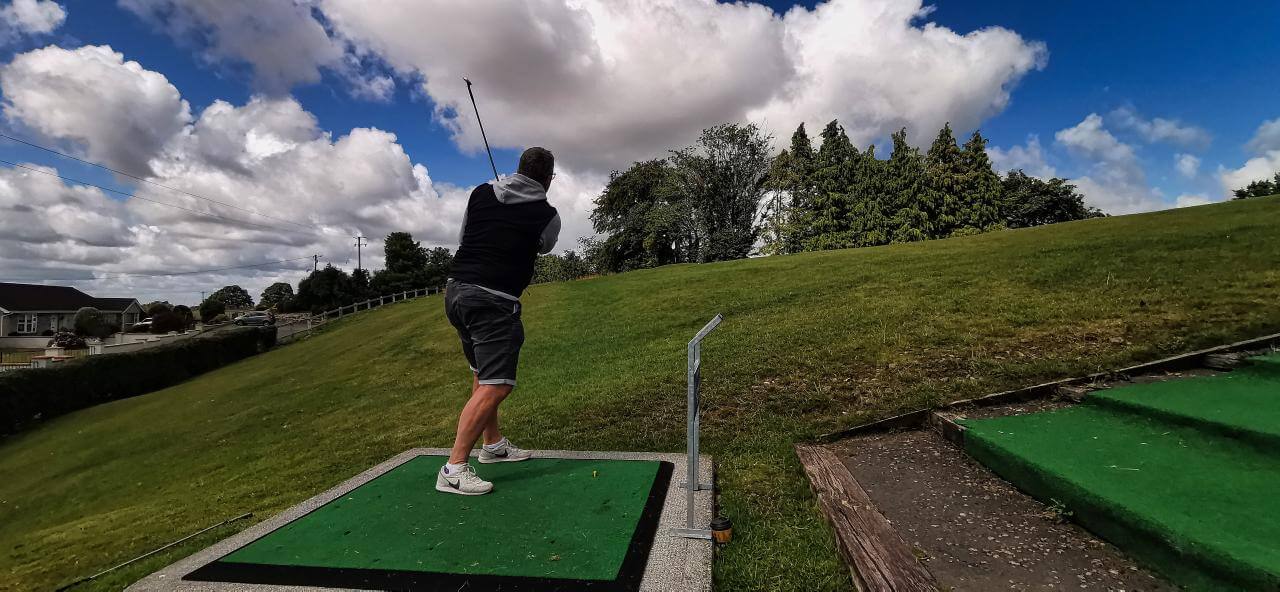 Sonne scheint und blauer Himmel. Endlich mal wieder schönes Wetter. Nach dem Frühstück wollen wir uns beim örtlichen Barbier rasieren lassen. Haben aber kein Glück mit Termin….. egal. Fahren dann los zum Golfplatz. Eine schöne Anlage. Erstmal ist da nur ein Spieler der gerade fertig ist und geht. Im Gespräch mit ihm und einem älteren Spielerpaar welche gerade kommen erfahren wir das wir auf Unna, die Platzverwalterin, warten sollen, die könne uns Schläger und Bälle möglicherweise leihen. Nach 20min kommt Unna, eine ältere Dame, die uns dann sehr herzlich alles an Equipment leiht und uns alles erklärt. Der Pitch and Put Platz hat 18 Löcher die bis zu 70m vom jeweiligen Abschlagspunkt entfernt sind. Alles wie beim Golf, nur etwas kleiner. Du hast 2 Schläger einen zum pitchen und einen zum putten. Steffen kann Golf spielen und erklärt mir wie ich schlagen muss.