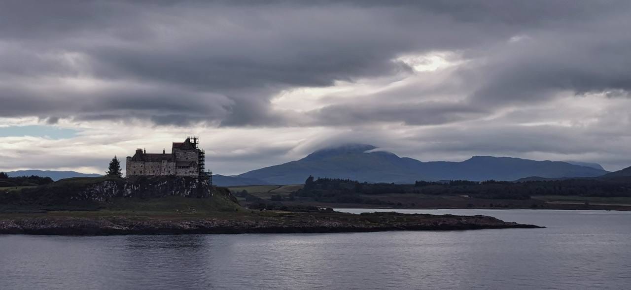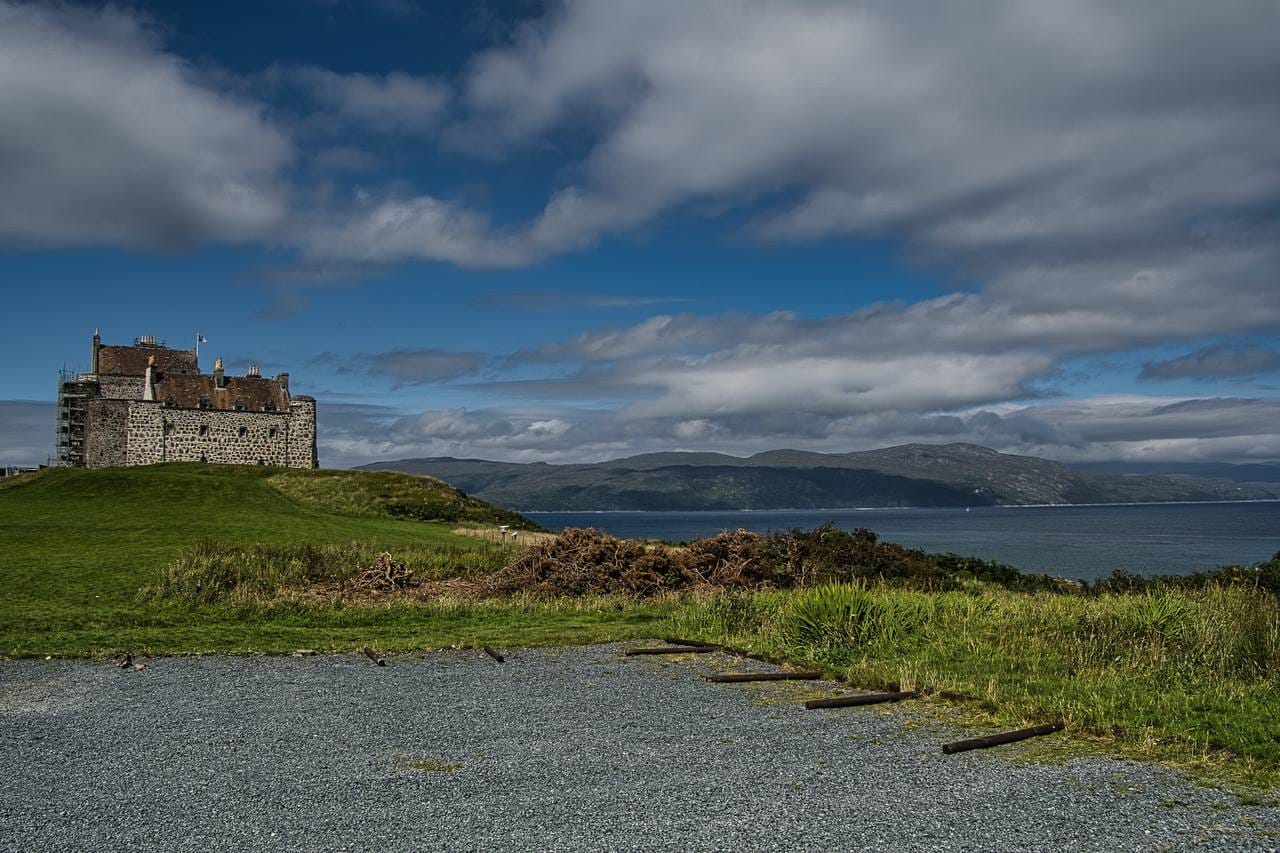 Super ruhige Nacht hier oben. Es ist bewölkt und 14° aber trocken. Nach dem Frühstück mit Toastbrot, der 9 Euro Toaster für den Gasgrill ist das mit meist genutzte Teil, fahren wir weiter. Die, natürlich einspurige, Strasse zieht sich jetzt über die Berge. Verfahren ist nicht denn es ist die einzige Strasse hier. Das Schild „Weak Road“, beschädigte Strasse, steht überall und das ist auch so. Es zieht sich Kilometerweit über die Berge und ich bin froh das Karsten gut motorisiert ist und nicht so breit, aber ich stelle mich wohl ein bisschen an, hier fahren auch Lastwagen und Linienbusse. Diese fahren absolut skrupellos, die kennen die Strecken halt. Überall hat es dann auch Schafe neben und auf der Strasse. Aber die Landschaft ist der absolute Hammer. Anstrengend zu fahren aber es lohnt allemal. Nach einer guten Stunde kommen wir an den „Eas Fors Waterfall“. Wir laufen ein Stück an dem Wasserfall entlang, sehr schön. Das Wetter ist inzwischen sehr gut. Weiter geht es über die Insel. Nach einer weiteren Stunde Fahrzeit kommen wir an Duart Castle an. Eine Burg aus dem 14. Jahrhundert. Sehr schön gelegen auf einer Klippe direkt am Meer. Wir besichtigen die Burg und trinken noch einen Kaffee im angeschlossenen Teehaus.