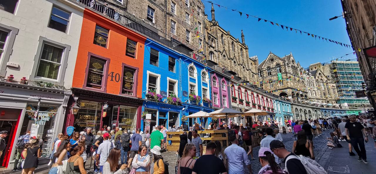 Morgens gehe ich nochmal durch Perth und hole Brötchen beim Bäcker. Ich drehe die Schleife etwas größer und schaue mich noch ein wenig um. Wir waren gestern beim falschen Barber. Neben dem Bäcker ist der „Demon Barber“. Der Laden ist ein einziges Horrorkabinett und die Barbiere…..Sensationell, was ein Spaß..! Nach dem Frühstück müssen wir uns dann etwas beeilen damit wir noch vom Parkplatz runterkommen, stellt sich doch gerade hier ein Regenbogenmarsch auf . Wenn wir nicht vor denen weg sind, heißt es erst mal warten. Als wir losfahren macht die Streckenabsicherungen dann noch mal den Weg für uns frei. Gerade noch geschafft. Als wir in Edinburgh ankommen finden wir schnell, relativ zentral, einen Parkplatz und laufen dann in die Altstadt. Eine wirklich schöne alte Stadt und vor allem eins……Voll. Hier findet im August ein Fest der Strassenkünstler statt. Überall Musiker, Akrobaten und andere Künstler.
