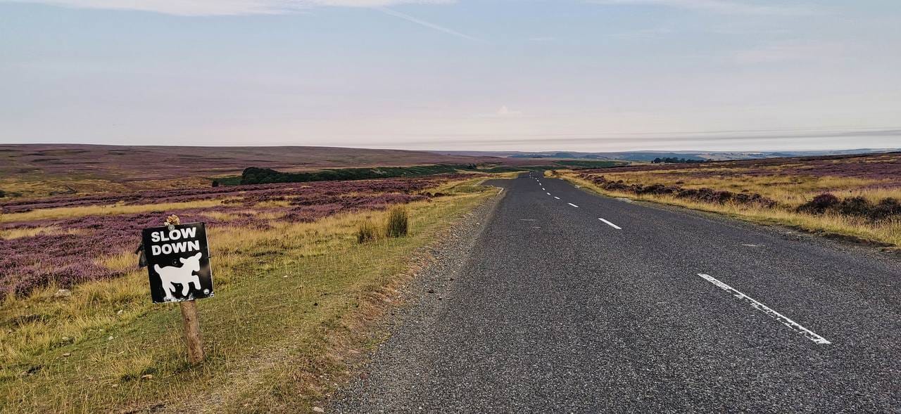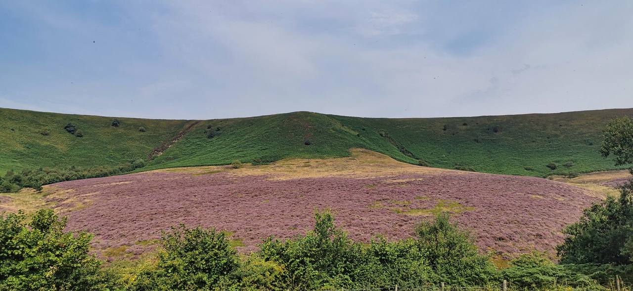 Nach einer sehr ruhigen Nacht, abgesehen von den zwei oder drei Autos die über das Viehgitter auf der Strasse gefahren sind, fahren wir weiter zum Hole of Horcum. Das Wetter ist super. Wir haben 22°C, Sonne, Tendenz steigend. Bestens für eine Wanderung. Das Hole of Horcum ist ein 120m tiefes Loch in der Landschaft mit einem Durchmesser von 1,2km. Steffen hat an einem Stand noch eine Karte geholt und den Tip das wir an den 2 Toren das kleinere links nehmen sollen. Wir laufen den Pfad ins Loch hinunter, zum Teil abenteuerlich schmal durch Farnhaine und zwischen Bäumen hindurch. Unten angekommen finden wir aber keine 2 Tore und so folgen wir dem Pfad einfach weiter bis wir den Hauptweg erreicht haben. Inzwischen ist es auch ziemlich heiß geworden, staut sich die Hitze doch innerhalb des Kessels und hier geht überhaupt kein Lüftchen. Es ist sehr schön hier. Überall grüne Wiesen, lila Heidekraut und Schafe. Nach 3km zieht der Weg aus dem Kessel wieder nach oben um dann um das Hole herum zurück zum Startpunkt zu führen. Unterwegs haben wir dann doch technische Probleme. Steffens Wanderstock bricht und auch nach professionelle Reparaturen schafft er es nicht bis ans Ende der Wanderung durchzuhalten. Eine tolle Landschaft mit zum Teil riesigen lila Flächen. Kurz bevor wir wieder an Karsten ankommen, sind da zwei Tore, Überraschung ….. wohl doch erst mal falsch gelaufen