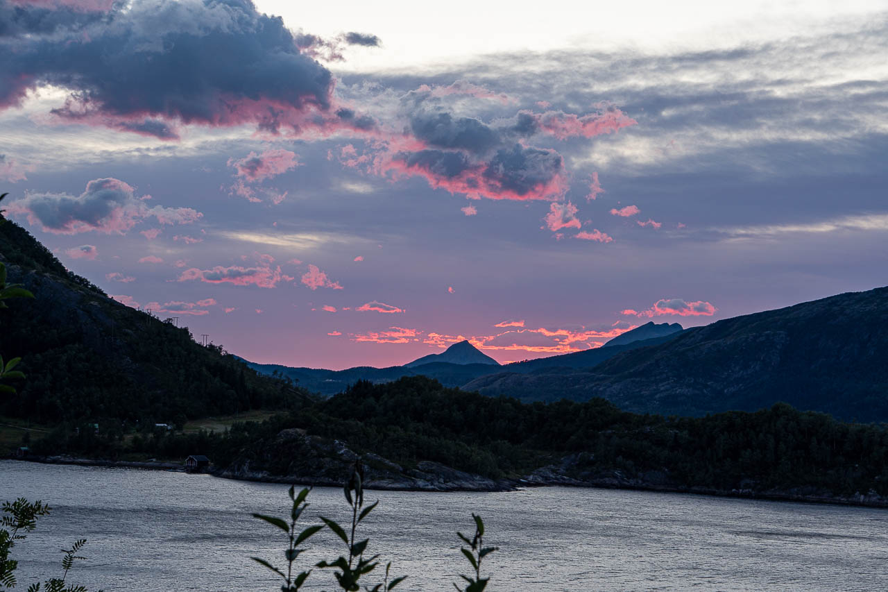 Ich will noch etwas Strecke machen und der FV17 weiter Folgen. In Furøy, wo ich gestern übernachtet habe, stelle ich mich an der Fähre und warte…und warte…. und warte. Die 17:00 Uhr Fähre kommt erst um 18:30Uhr wegen des Starkwindes. Nachdem ich um 19:00 Uhr auf der anderen Seite des Fjords bin, fahre ich noch eine halbe Stunde und stelle mich oberhalb eines Sees auf einen Parkplatz. Hier bleibe ich über Nacht. Morgen geht es weiter.