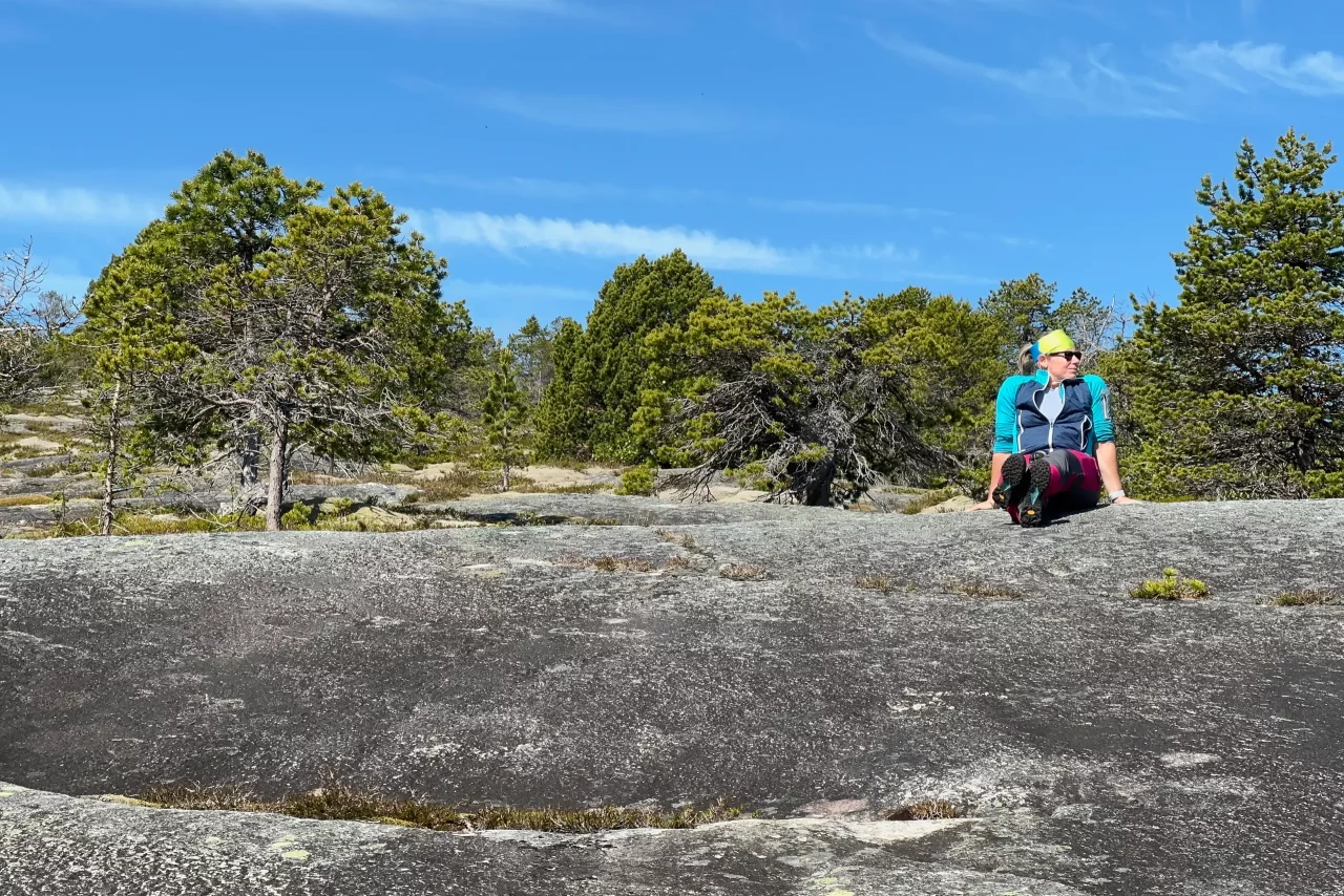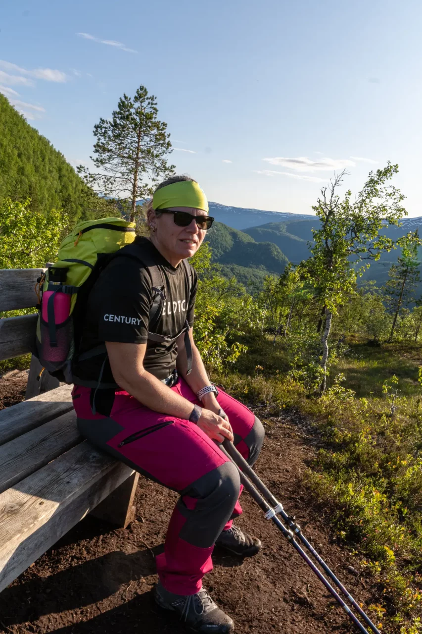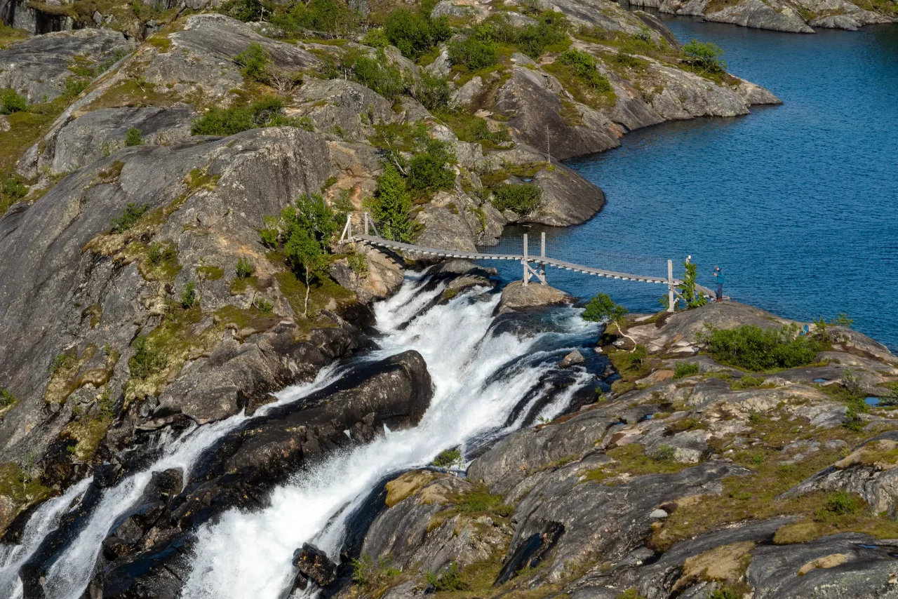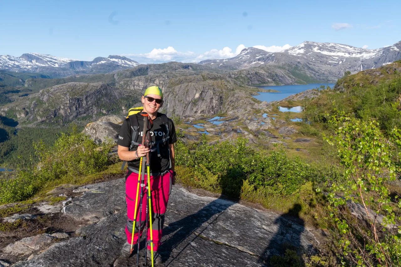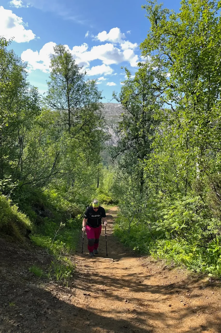Rago Nationalpark Morgenspaziergang zu den FelsmalereienPerfekter PlatzSteiler Anfang der Tourüber SchneefelderImmer steil nach obenRast am PlateauDas ist Landschaft in NorwegenÜber diese Brücke musst (kannst) du gehen!Einer drübenPerspektiveHeldinvölligst platt