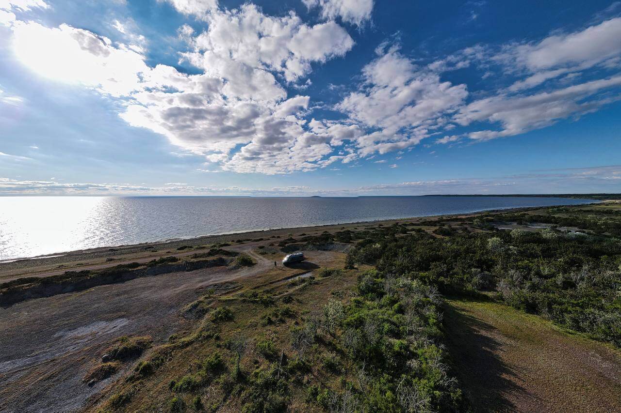 Die Nacht ist um 7 Uhr vorbei. Senile Bettflucht🤔. War keine so ganz ruhige Nacht. Der Grauwassertank ist grenzwertig voll , jedesmal wenn sich einer im Bett umdreht schwappt es gegen denn Vollsensor und piept. Als erstes morgens Eimer unter Auslauf und mal ins Toilettenhäuschen entsorgt. Nach dem Frühstück packen wir in Ruhe zusammen und fahren dann in Südliche Richtung nach Harnösand, eine etwas größere Stadt. Hier kaufen wir Lebensmittel und eine Schwedische Datenkarte für den Router. Anschließend geht es ins ca. 3 km entfernte Smitings. Hier soll es Tunnelhöhlen geben die wir uns anschauen wollen. Aber erst gibt es Kaffee und schwedische Zimtschnecken….lecker.