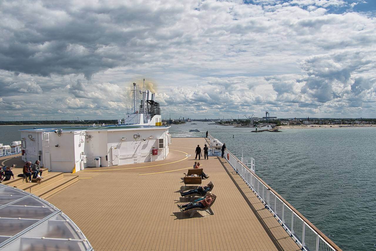Wir starten gegen 9.00 Uhr und fahren nach Rostock zum Überseehafen. Unterwegs halten wir noch an, holen Brötchen und frühstücken in aller Ruhe. Gegen 12 Uhr sind wir am Hafen. Ich habe am Sonntag schon online eingecheckt deshalb muss ich an der Hafeneinfahrt nur noch den Barcode der Bestätigung ans Lesegerät halten und wir haben die Bordtickets. Irgendwie geht das ganze jetzt Ratz Fatz und eh wir uns versehen, stehen wir schon in der Wartespur auf Position. Jetzt muss nur noch das Schiff „Nils Holgerson“ kommen! Als die Fähre angelegt hat geht es los! Keine 5 min später sind wir an Bord und nach kurzer Suche (naja hat schon etwas gedauert 🤦🏻♂️!) in unserer Kabine. Alles prima, noch an Deck und dann im Restaurant Kaffee und die ersten Zimtschnecken……lecker😋. Später in der Kabine duschen und etwas ruhen.