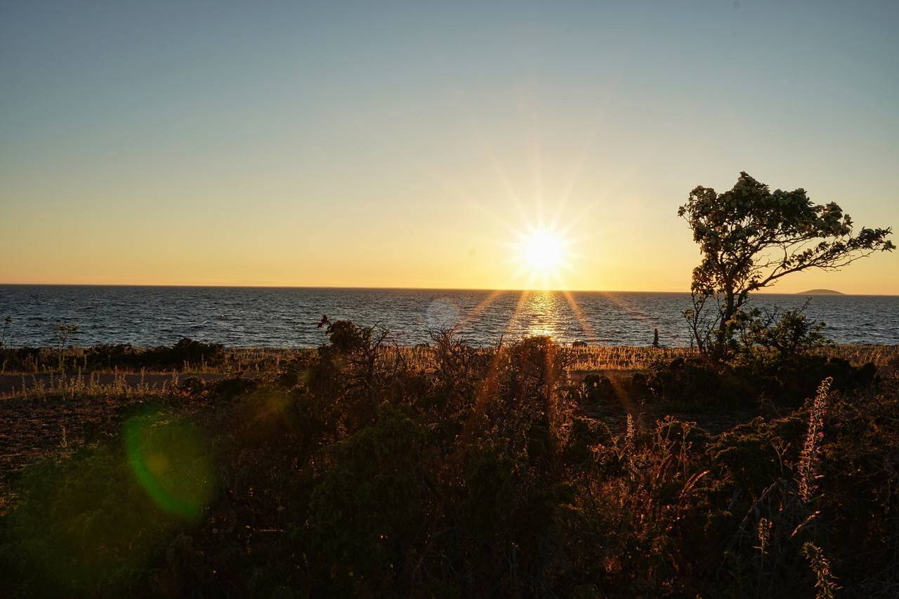 Die Gelegenheit genutzt und mit der „Grünen Geli“, so heißt meine Giesskanne, flugs Wasser am Waschbecken des Strandbads geholt und Karstens Tank aufgefüllt. Während ich Wasser aufgefüllt habe hat Silke Abendessen gemacht. Da dort am Park übernachten nicht genehmigt ist and wir die paar Kilometer zurück nach Harnösand gefahren zu einem kleinen Stellplatz direkt am Meer (Park4Night). Die Sonne geht gerade unter und wir haben einen richtig schönen Sonnenuntergang.