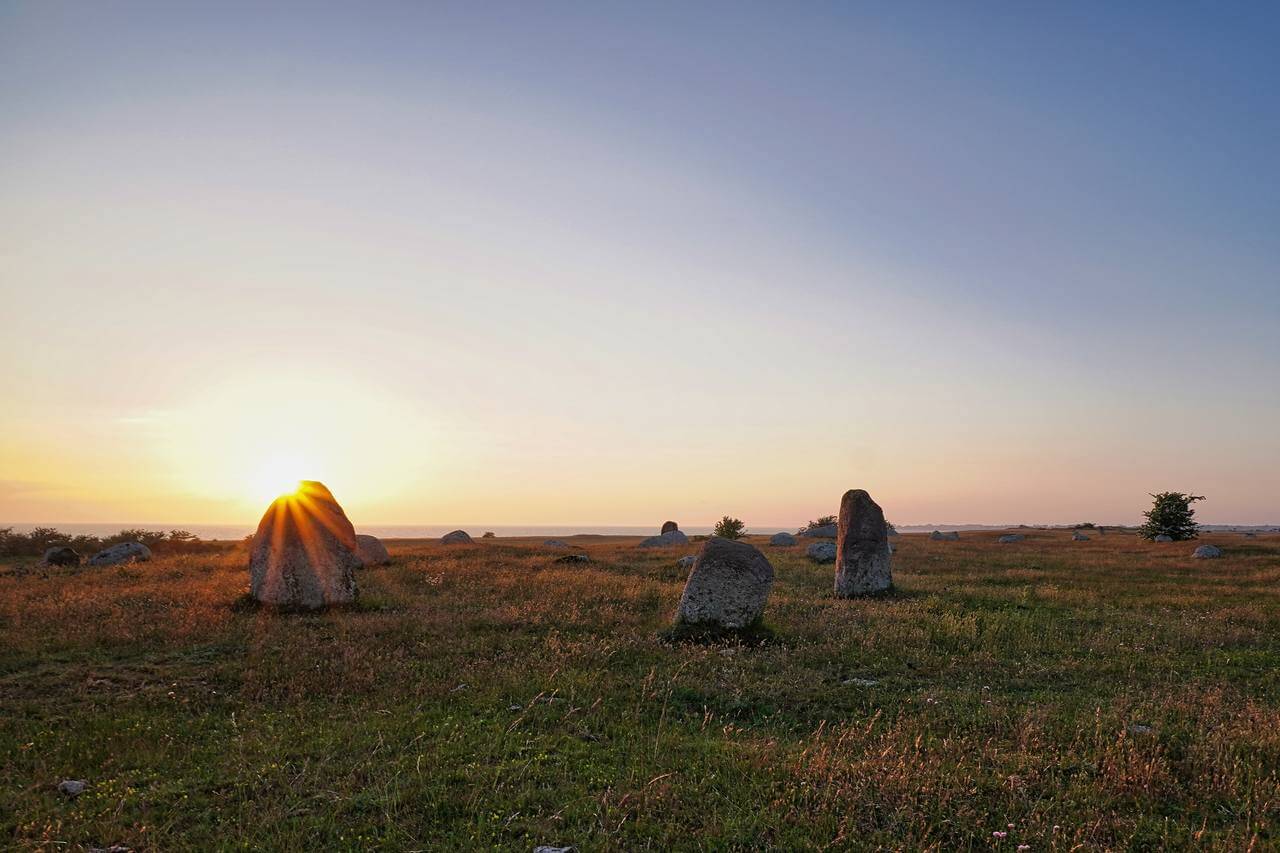 Im Süden angekommen finden wir nach kurzer Zeit einen Stellplatz in der Nähe des Naturschutzgebietes Ottenby. Dort steht auch der lange Jan, der größte Leuchtturm Schwedens. In der Stellplatzbeschreibung ist bei Park4Night von einer kurzen Wanderung dahin zu lesen. Ich gehe nach dem Abendessen los um noch ein paar Fotos dort vom Sonnenuntergang zu schießen. Breche dann aber ab und drehe um. Am Rückweg komme ich an einer altem Steinsetzung, einer alten Begräbnisstätte, vorbei die im Sonnenuntergang nochmal besonders wirkt. Als ich an Karsten zurück bin war ich über 2h unterwegs mit kurzen Fotostops und hätte am meinem Wendepunkt noch mindestens 1,5km zu gehen gehabt. Hier in Schweden sind die Begriffe „nah“ und „kurz“ wohl etwas anders auszulegen😂