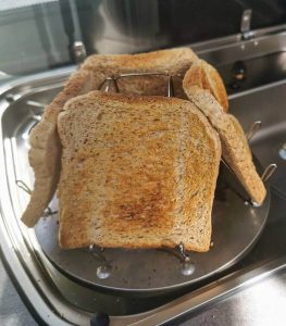 07.30 Uhr…. Erst mal Kaffee. Bestes Wetter. Windig aber die Sonne scheint. Zum Frühstück kommt der Toastaufsatz ins Spiel und .. super Ergebnis.