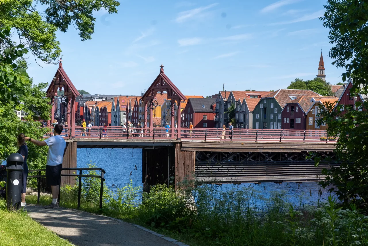 Weiter geht’s am Morgen nach dem Frühstück. Gegen 11:00 Uhr sind wir in Trondheim und finden einen kostenlosen Parkplatz, etwa 20 Minuten zu Fuß vom Zentrum entfernt. Trondheim ist – für skandinavische Verhältnisse – eine schöne Stadt. Hat mir 2023 auch schon gut gefallen. Die Altstadt, das historische Bakklandet mit ihren bunten Holzhäusern, ist sehr gemütlich. Weniger gemütlich ist die Baustelle, die sich aktuell durch die Altstadt zieht – die Straßen werden saniert … 🤷🏻‍♂️