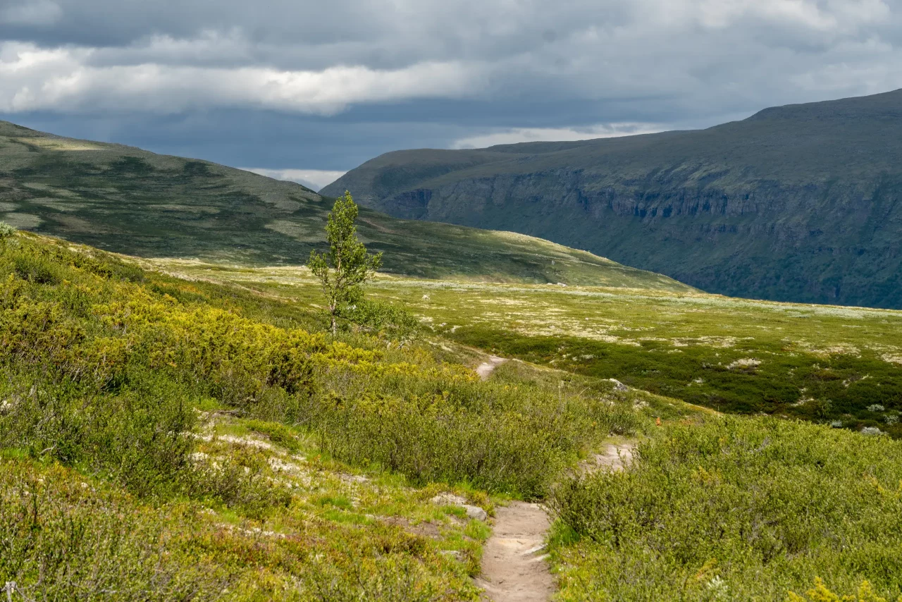 Als wir am Wanderparkplatz ankommen bekommen wir den letzten kostenfreien Parkplatz – heute läuft es! Wir laufen den Moschusochsen-Trail. Laut Komoot hat man gute Chancen, die Tiere zu sehen. Um es kurz zu machen – haben wir nicht!