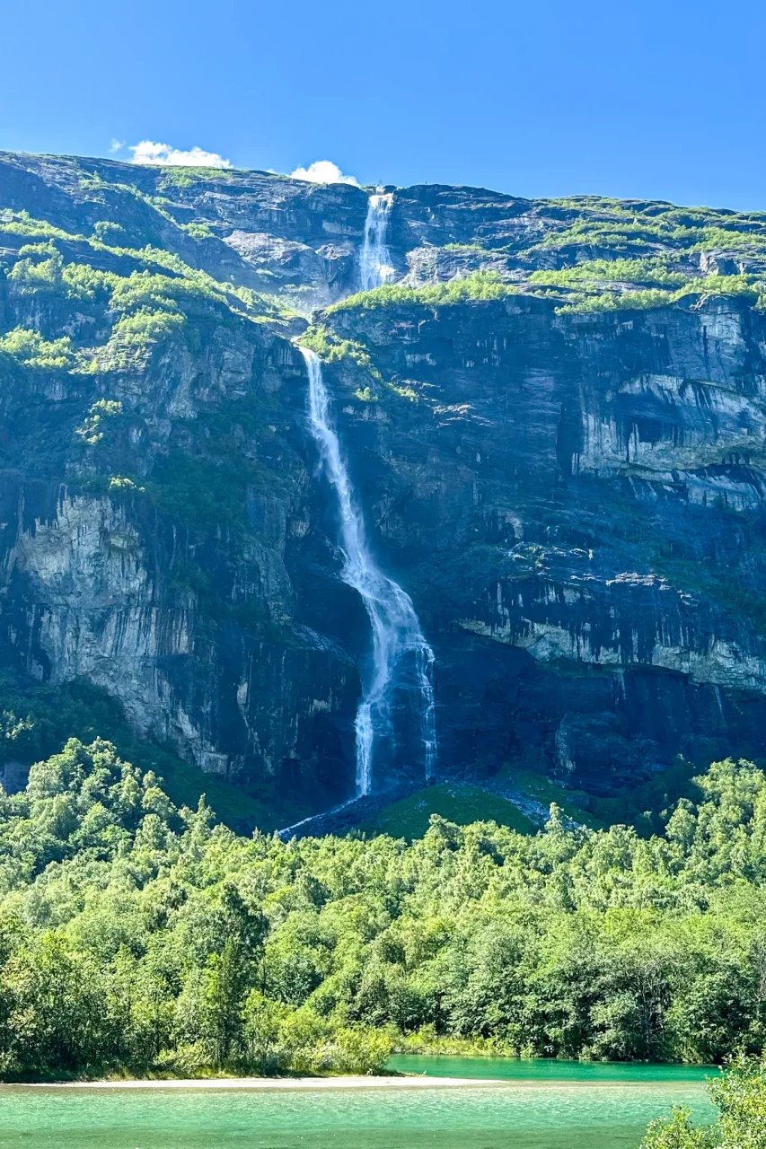 Google schickt uns über die E6 direkt zum Geiranger, Susi wählt einen weiten Bogen um den Trollstigen herum. Wir entscheiden uns für den Umweg – und das ist auch gut so. Die Berge werden steiler, die Schluchten enger, und wenn ich hier immer von „sensationeller Landschaft“ schreibe, dann nicht, weil mir nichts Besseres einfällt – sondern weil hier wirklich jede Kurve und jede Wanderung neue, imposante Ausblicke bietet. Wir fahren entlang eines Wildwassers, Wasserfälle stürzen von allen Seiten ins Tal.