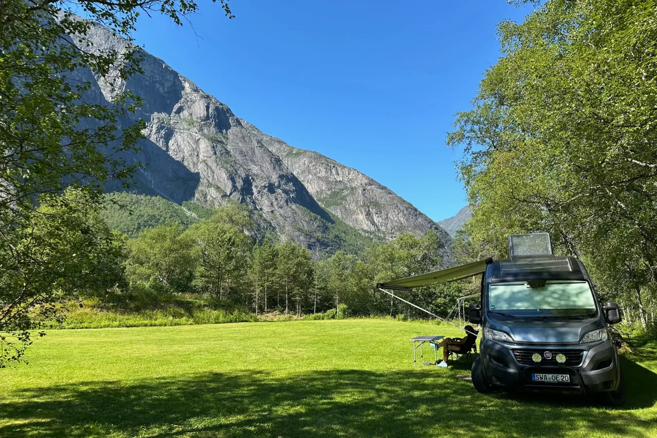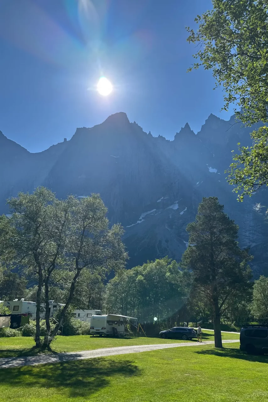 Weiter geht’s bis zum Campingplatz „Trollveggen“. Hier bleiben wir heute. Wäschewaschen ist angesagt – und bei dem Wetter und dieser Kulisse kann man’s definitiv aushalten.