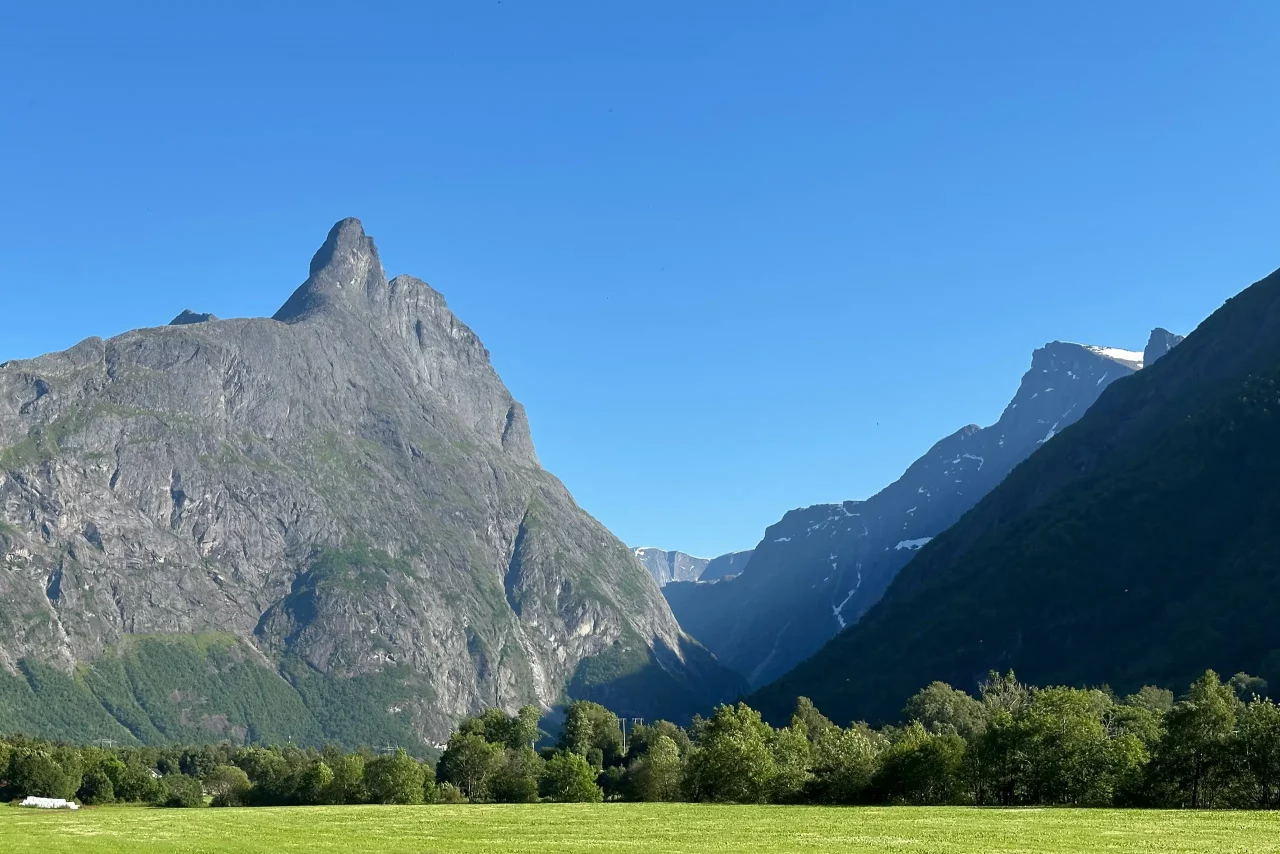 Heute sind es um 09:00 Uhr schon deutlich über 20°C – das bin ich überhaupt nicht gewöhnt. Nach dem Frühstück starten wir und fahren zum Trollstigen. Der Trollstigen ist wohl die Königin unter Norwegens Panoramastraßen – spektakulär, wild und mit einem Namen, der verspricht, was kommt: Trollleiter. Elf enge Haarnadelkurven winden sich in die steile Felswand, immer begleitet vom Rauschen des mächtigen Stigfossen, der sich über 300Meter in die Tiefe stürzt.