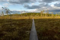 Nach etwa 100 m kommen die zwei mir entgegen, und nach kurzem PowWow gehen wir gemeinsam eine Runde durch das Moor- und Sumpfgebiet des Nationalparks. Nach knapp drei Stunden sind wir zurück, eine schöne und auch fordernde Wanderung mit 11,5km Länge. Ich merke deutlich das wir nach Norden kommen, es ist um 22:00 Uhr noch Taghell.