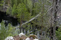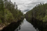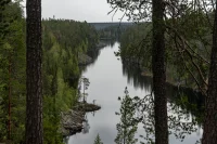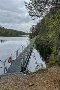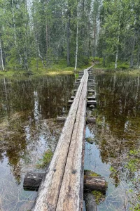 Ich fahre weiter bis zum Oulanka-Nationalpark und finde einen schönen Campingplatz in der Nähe des Besucherzentrums. Alles ruhig, mitten im Kiefernwald gelegen. Am Abend gehe ich nochmal in die Sauna – und danach in den Fluss schwimmen.