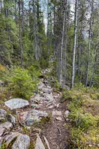 Ich fahre weiter, will noch zum Julma-Ölkky, dem größten Schluchtensee Finnlands. Nach knapp 15 km bin ich da, ziehe die Wanderschuhe an – mal kurz hin, zwei Fotos und weiter… Denkste! Drei Rundwege stehen zur Auswahl: 4,7 km, 9 km oder 10 km. Kein Problem – muss ja nur vor dem Dunkelwerden zurück sein. Ach ja… es wird ja gar nicht mehr dunkel 😜