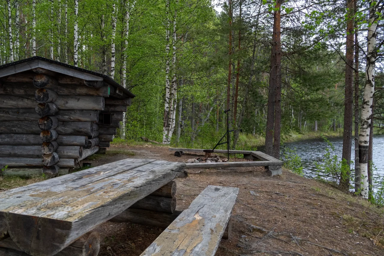 Ich fahre weiter bis zum Oulanka-Nationalpark und finde einen schönen Campingplatz in der Nähe des Besucherzentrums. Alles ruhig, mitten im Kiefernwald gelegen. Am Abend gehe ich nochmal in die Sauna – und danach in den Fluss schwimmen.