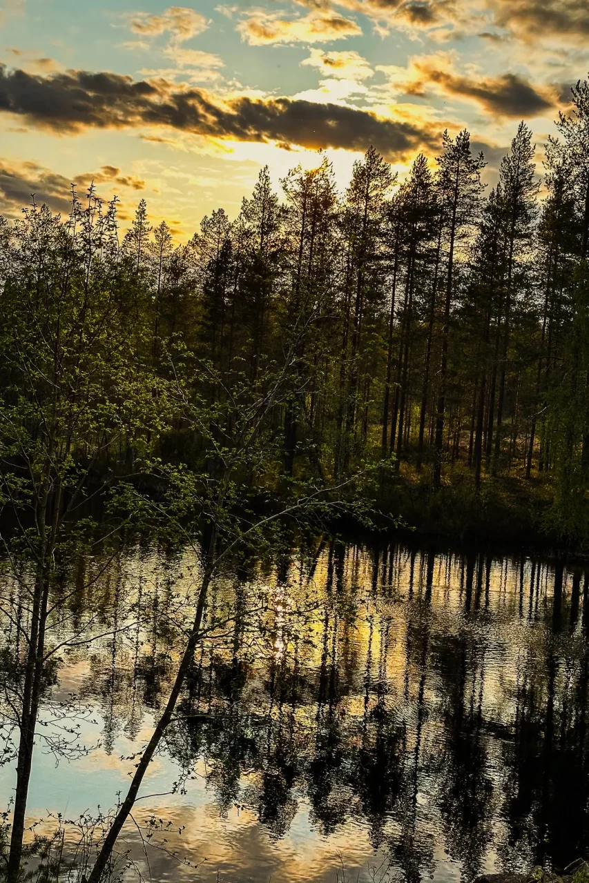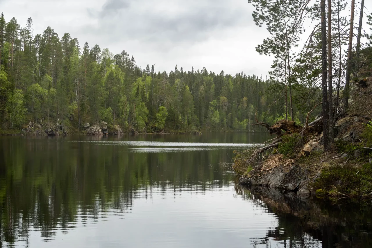 💧 Das dunkle Wasser finnischer Seen entsteht durch natürliche Gerbstoffe aus den umliegenden Wäldern. Ein typisches Merkmal der nordischen Natur und kein Zeichen von Verschmutzung. Viele dieser dunklen Seen haben hervorragende Wasserqualität – wer hier badet, schwimmt quasi im nordischen Kräutertee. 😉