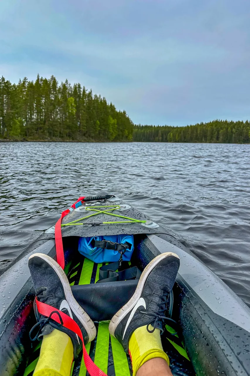 Das Wetter ist gut, also nutze ich den Nachmittag und fahre mit dem Kajak auf den See hinaus. Vom Wasser aus sieht die Landschaft wunderschön aus und ich genieße den Moment. Nach einer Weile frischt der Wind ordentlich auf, und es wird mühsam, gegen Wind und die nun teils großen Wellen anzufahren. Nach gut einer Stunde lande ich wieder am Steg an und packe das Boot, nachdem es getrocknet ist, wieder ein.