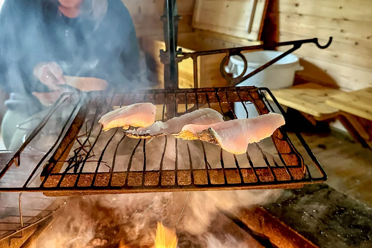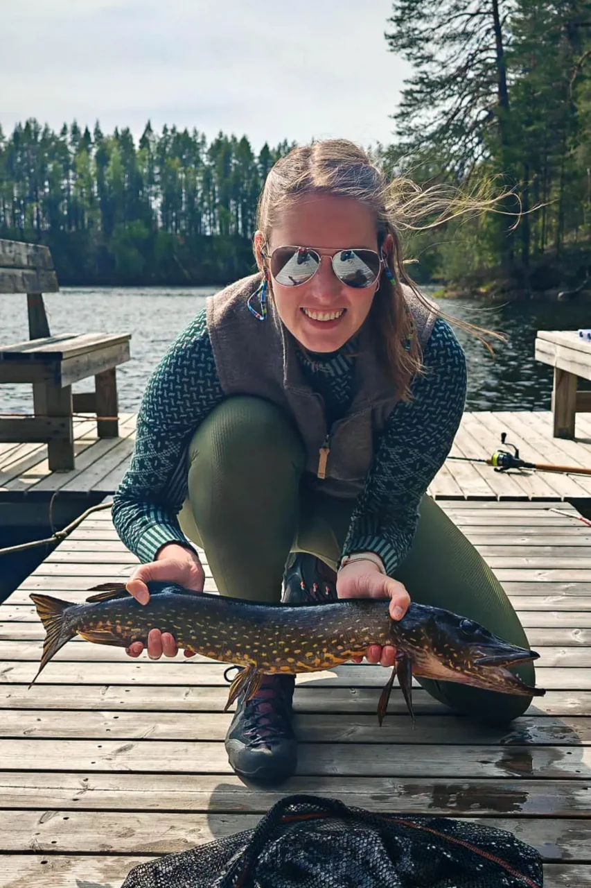 Aber die heutige Challenge geht noch weiter: Vom Markt haben wir – Tobi, Svenja und ich – karelische Piroggen (Karjalanpiirakka) mitgebracht bekommen und uns fürs Abendessen verabredet. Die beiden waren kurz angeln und haben einen 75 cm langen Hecht gefangen, den es dazu gibt. Da muss ich durch! Die Piroggen waren super, der Hecht – siehe oben. 😬