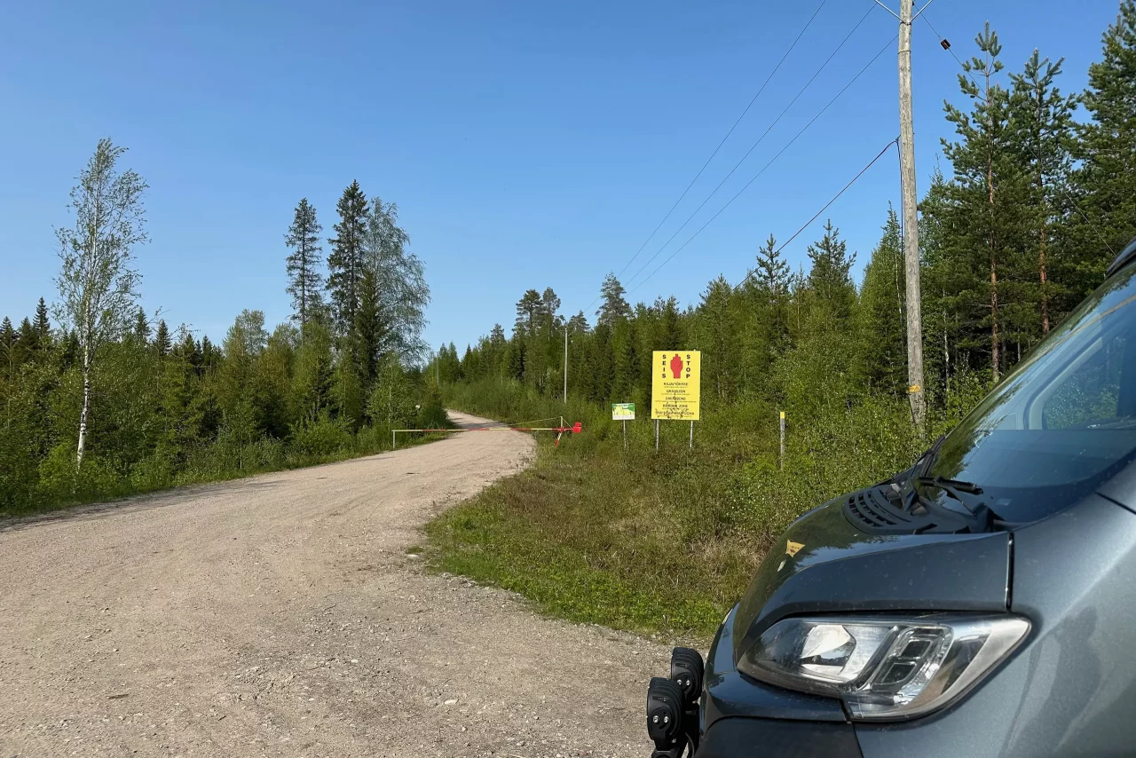 Ich verabschiede mich von Tobi, Svenja ist auf Fototour, und fahre weiter. Mein nächstes Ziel ist die Huskiefarm Eräkesus. Vorher fahre ich aber noch an die russische Grenzlinie. Ca. 13 km hinter der Farm endet die Straße an einem Schlagbaum und einem Warn- und Verbotsschild. Es ist niemand hier, aber irgendwie komme ich mir beobachtet vor – irgendwie unheimlich!