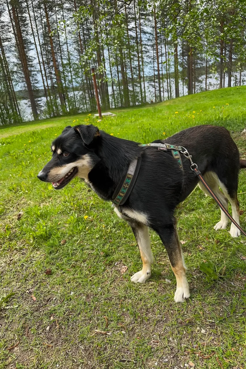 Ich gehe auf eine kurze Wanderrunde und werde gefragt, ob ich nicht vierbeinige Begleitung mitnehmen wolle – hier wären doch einige, die gerne etwas laufen würden. So gehe ich also mit Finnja eine Stunde durch den angrenzenden Wald und am See entlang.