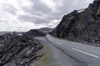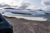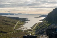 Gegen 13:00 Uhr fahren Karsten und ich weiter. Ab jetzt: neue Richtung – Westen. Logisch, nach Osten geht’s nicht weiter … 🤦🏻♂️. Erst zurück entlang des Varangerfjords, dann übers Fjäll weiter nordwestlich. Eine wunderschöne Landschaft. Ich fahre den ganzen Nachmittag – und wenn ich mich nicht gezwungen hätte, wäre ich hinter jeder zweiten Kurve begeistert ausgestiegen. (Naja – 5 °C und starker, eisiger Wind haben mich doch auch etwas ausgebremst 🥶!)