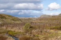 Auf dem Weg nach Vardø habe ich eine Wanderung entdeckt, die zu einem Wasserfall im Natfjelldalen führt. Klingt gut – mach ich. Dafür biege ich in Vadsø Richtung Varangerhalvøya-Nationalpark ab. Der Startpunkt liegt etwas 6km außerhalb. Die Zufahrt führt über Schotterpiste, durch enge Kurven und es geht stellenweise sehr steil Auf und Ab. Karsten meistert das souverän. Wer braucht schon Allrad? – ICH!!!!
