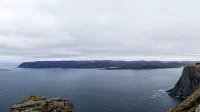 Ab hier wird die Landschaft komplett anders als in Finnland: keine Kiefernwälder mehr, sondern nur noch niedrige Birken, schroffe Hügel – wie in den Alpen auf 1.500 Metern, nur ohne Berge. Bis 20:30 Uhr umfahre ich den Varangerfjord. Ich bin versucht, hinter jeder Kurve anzuhalten – so beeindruckend ist die Landschaft. Die Straße zieht sich durchs „Hochgebirge“, und daneben liegt der tiefblaue Fjord. Seit 16:00 Uhr spielt auch das Wetter mit: strahlend blauer Himmel, Sonnenschein bei 10 °C. Nur der Wind – eisig!