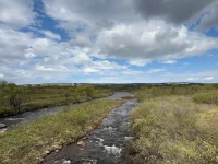 Nach etwa 6 km bin ich am Wasserfall. Schön – aber nicht umwerfend. Ein Stück weiter unten treffe ich auf einen Angler. Wir unterhalten uns eine Weile, er erzählt von den Lachsen, die hier normalerweise springen. Aber dieses Jahr sei das Wasser wohl noch zu kalt. Zurück bei Karsten ist es 20:30 Uhr. Schöne Wanderung aber der Wasserfall hat sich doch eher nicht gelohnt!