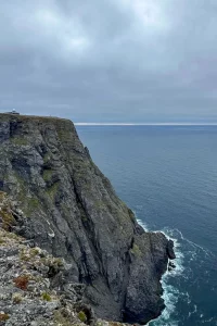 Um 13:00 Uhr bin ich in Kirkenes. Die Stadt hat rund 3.500 Einwohner und war früher ein wichtiger Hafen für Fischfang und Bergbau. Heute ist sie ein spannender Mix aus arktischer Grenzstadt, samischer Kultur und einem Hauch Russland – russische Schilder, Supermärkte mit Wodkaabteilung, früher sogar Busverbindungen nach Murmansk. Kirkenes ist sozusagen die Schnittstelle zwischen Finnland, Norwegen und Russland. Ganz ehrlich … ich fand es so interessant, dass ich kein einziges Foto gemacht habe und nach zwei Stunden wieder weitergefahren bin.