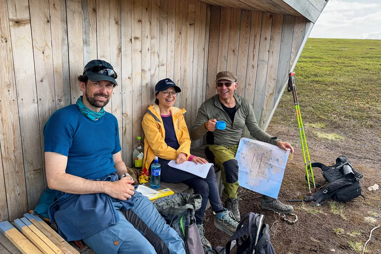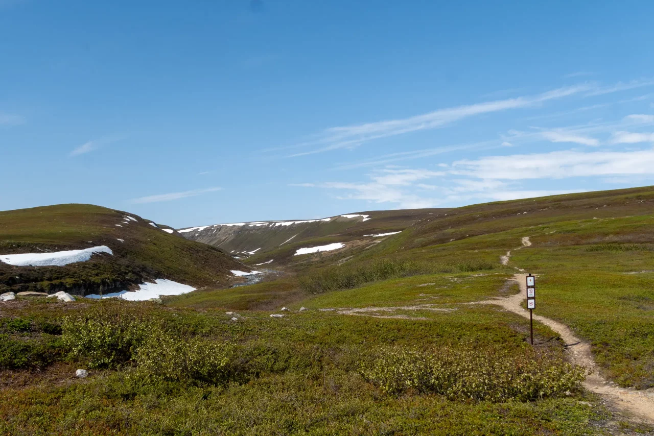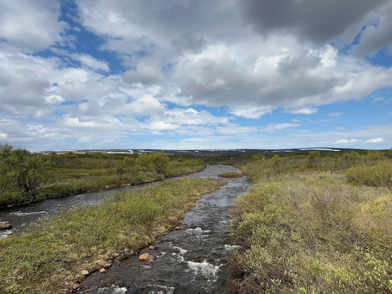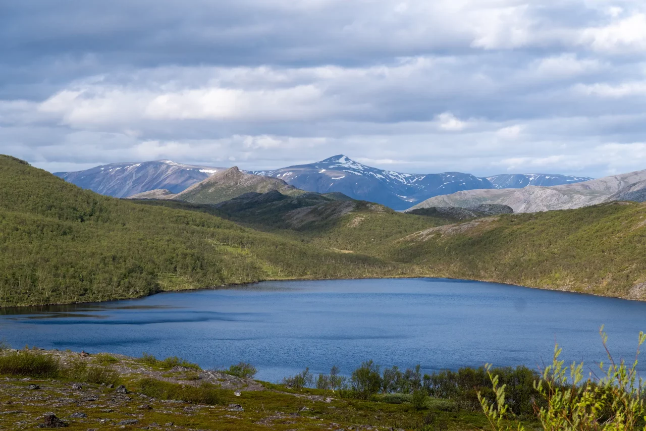 Die Tour ist traumhaft: Diese Weite, der Fjord als blaues Band im Hintergrund, oben auf dem Fjäll noch große Schneefelder – und am Ende ein eindrucksvoller Wasserfall.