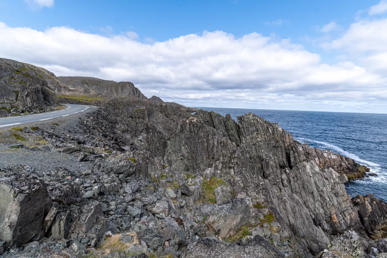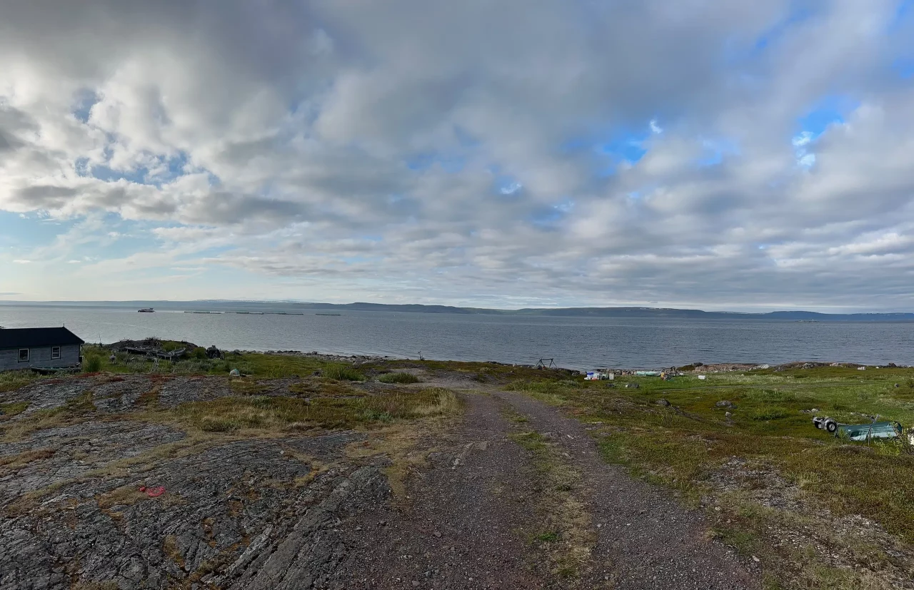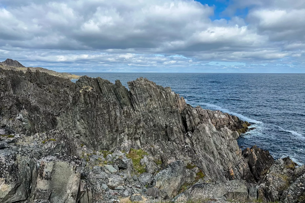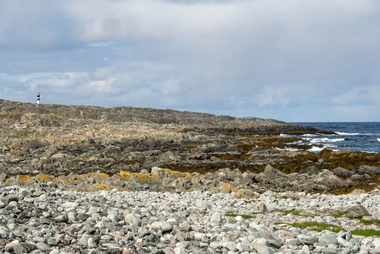Wieder zurück bei Karsten hole ich das Frühstück nach und fahre weiter an den Porsangerfjord. Auf einem Rastplatz will ich nur schnell Müll loswerden, entdecke aber ein Schild zu einem Geopfad. Also wieder Wanderschuhe an. Der Pfad ist mit roten Holzpflöcken markiert, ein paar Schautafeln – sogar auf Deutsch – erklären die geologischen Besonderheiten der Gegend. Zwischenzeitlich ist es spannend weil die Markierungen eher kreativ verteilt sind. So ziehte ich öfter Bögen, um wieder auf den Weg zu kommen. Das hat sich auch gelohnt!