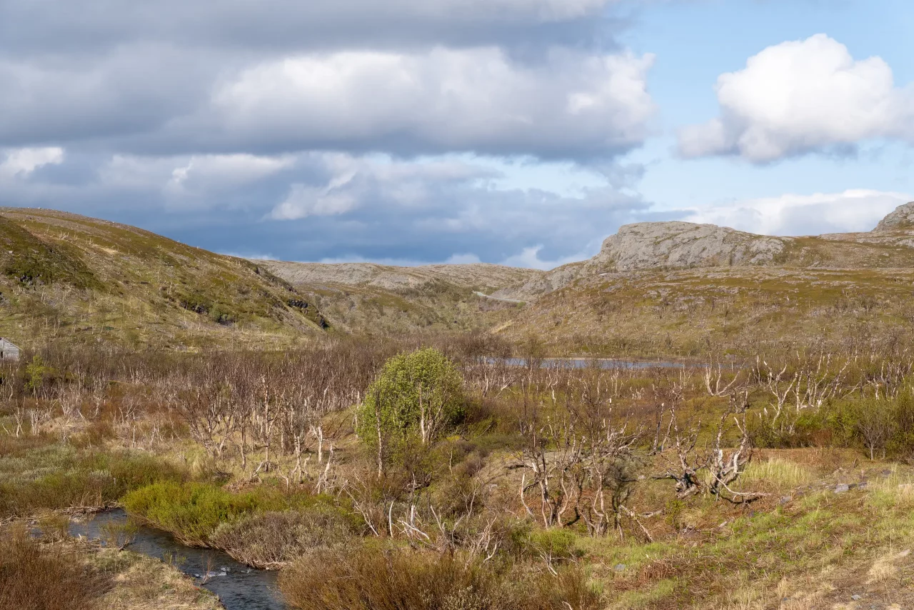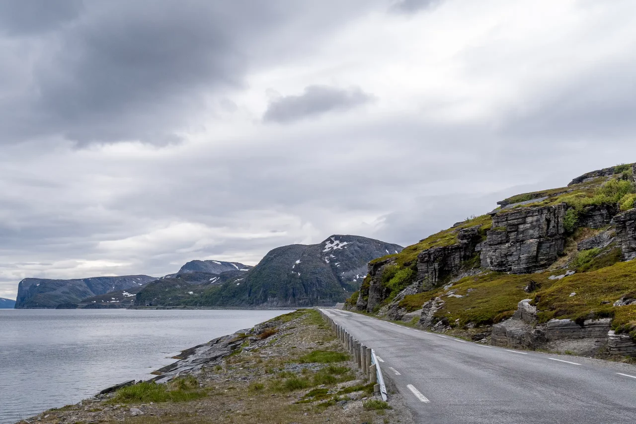 Gegen 13:00 Uhr fahren Karsten und ich weiter. Ab jetzt: neue Richtung – Westen. Logisch, nach Osten geht’s nicht weiter … 🤦🏻♂️. Erst zurück entlang des Varangerfjords, dann übers Fjäll weiter nordwestlich. Eine wunderschöne Landschaft. Ich fahre den ganzen Nachmittag – und wenn ich mich nicht gezwungen hätte, wäre ich hinter jeder zweiten Kurve begeistert ausgestiegen. (Naja – 5 °C und starker, eisiger Wind haben mich doch auch etwas ausgebremst 🥶!)
