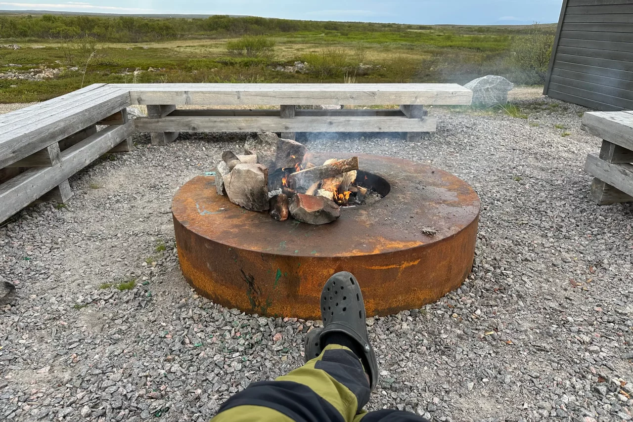 Nach etwa 5 km komme ich am offiziellen Nationalparkeingang an. Dort gibt’s einen einfachen Unterstand mit Feuerstelle, an dem gerade drei Leute sitzen. Nach einem kurzen Hallo werde ich direkt zu einem Kaffee eingeladen. Es stellt sich heraus: Die drei arbeiten für den Nationalpark und sind neugierig, wie ich überhaupt von der Tour erfahren habe. Wir unterhalten uns eine Weile, und nach einer Tasse Lagerfeuer-Kaffee mit ordentlich Kaffeesatz (direkt im Kessel gekocht, versteht sich), mache ich mich wieder auf den Weg.