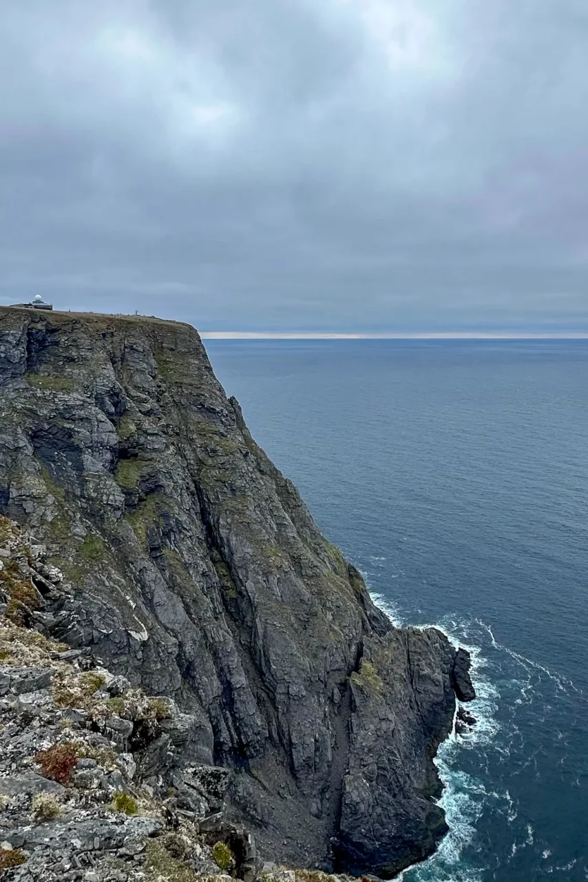 Um 13:00 Uhr bin ich in Kirkenes. Die Stadt hat rund 3.500 Einwohner und war früher ein wichtiger Hafen für Fischfang und Bergbau. Heute ist sie ein spannender Mix aus arktischer Grenzstadt, samischer Kultur und einem Hauch Russland – russische Schilder, Supermärkte mit Wodkaabteilung, früher sogar Busverbindungen nach Murmansk. Kirkenes ist sozusagen die Schnittstelle zwischen Finnland, Norwegen und Russland. Ganz ehrlich … ich fand es so interessant, dass ich kein einziges Foto gemacht habe und nach zwei Stunden wieder weitergefahren bin.